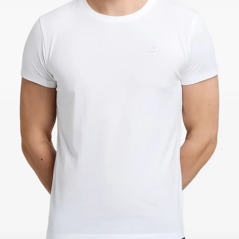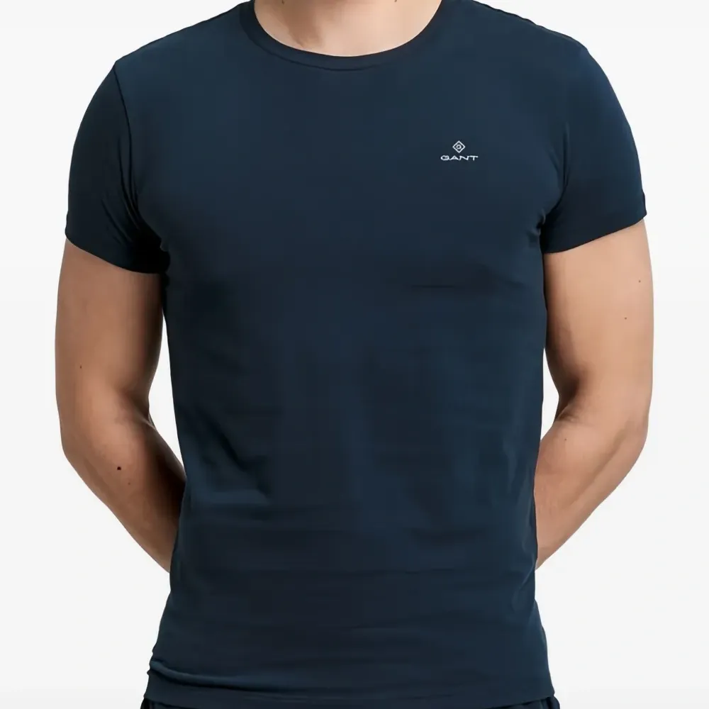 синяя и белая футболка с круглым вырезом и короткими рукавами