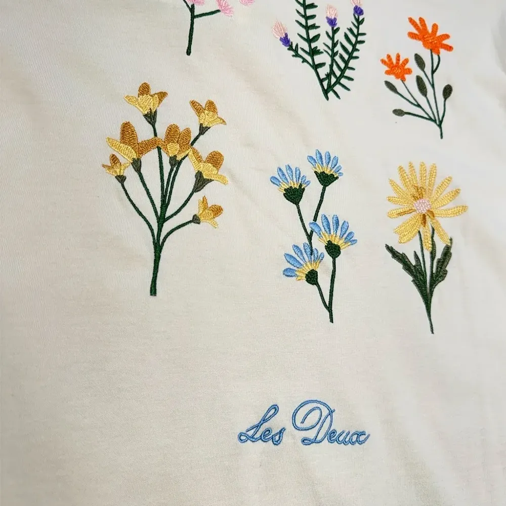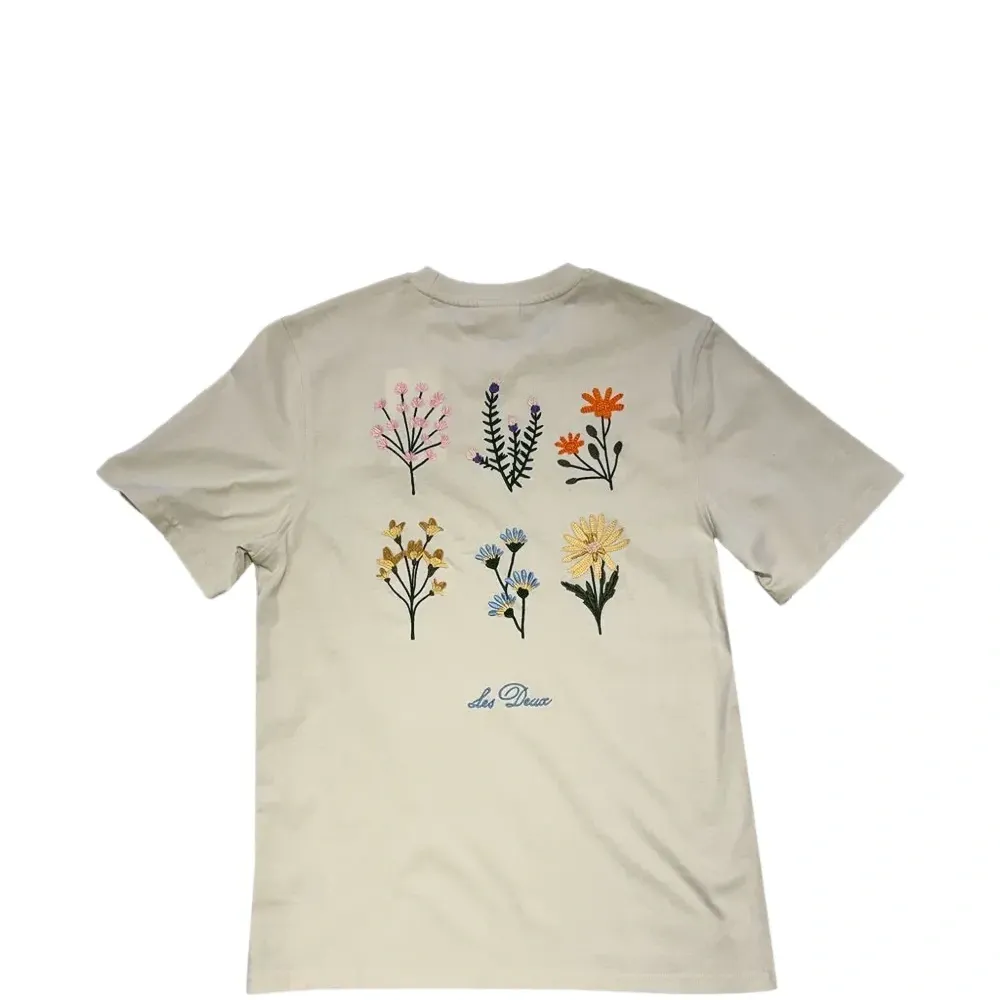 бежевый хлопок, цветочная вышивка, короткие рукава, круглый вырез