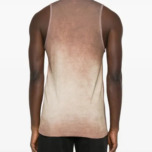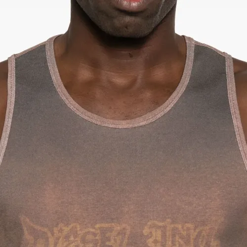 коричневая майка без рукавов с эффектом кислотной стирки, круглым вырезом, графичным принтом и прямым подолом