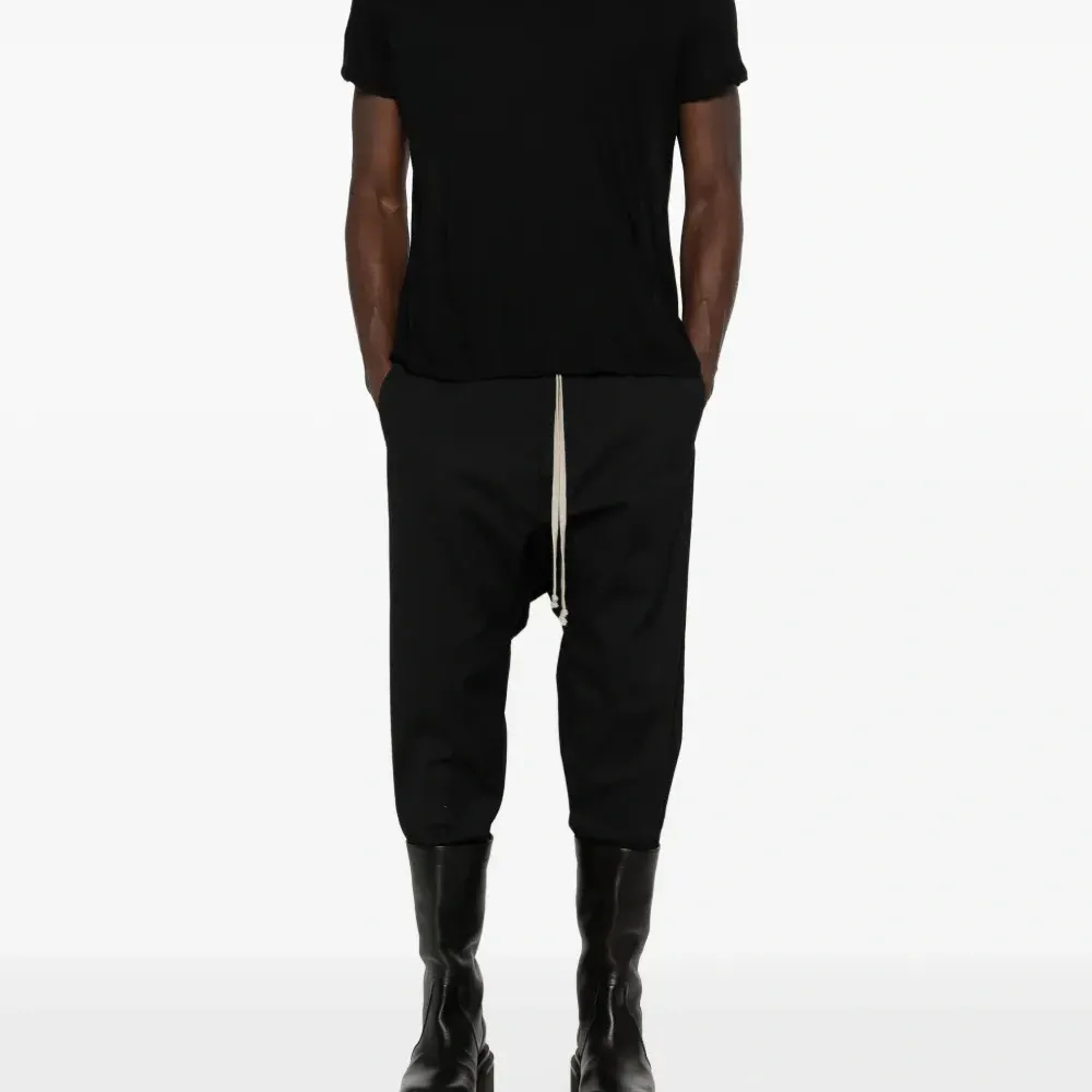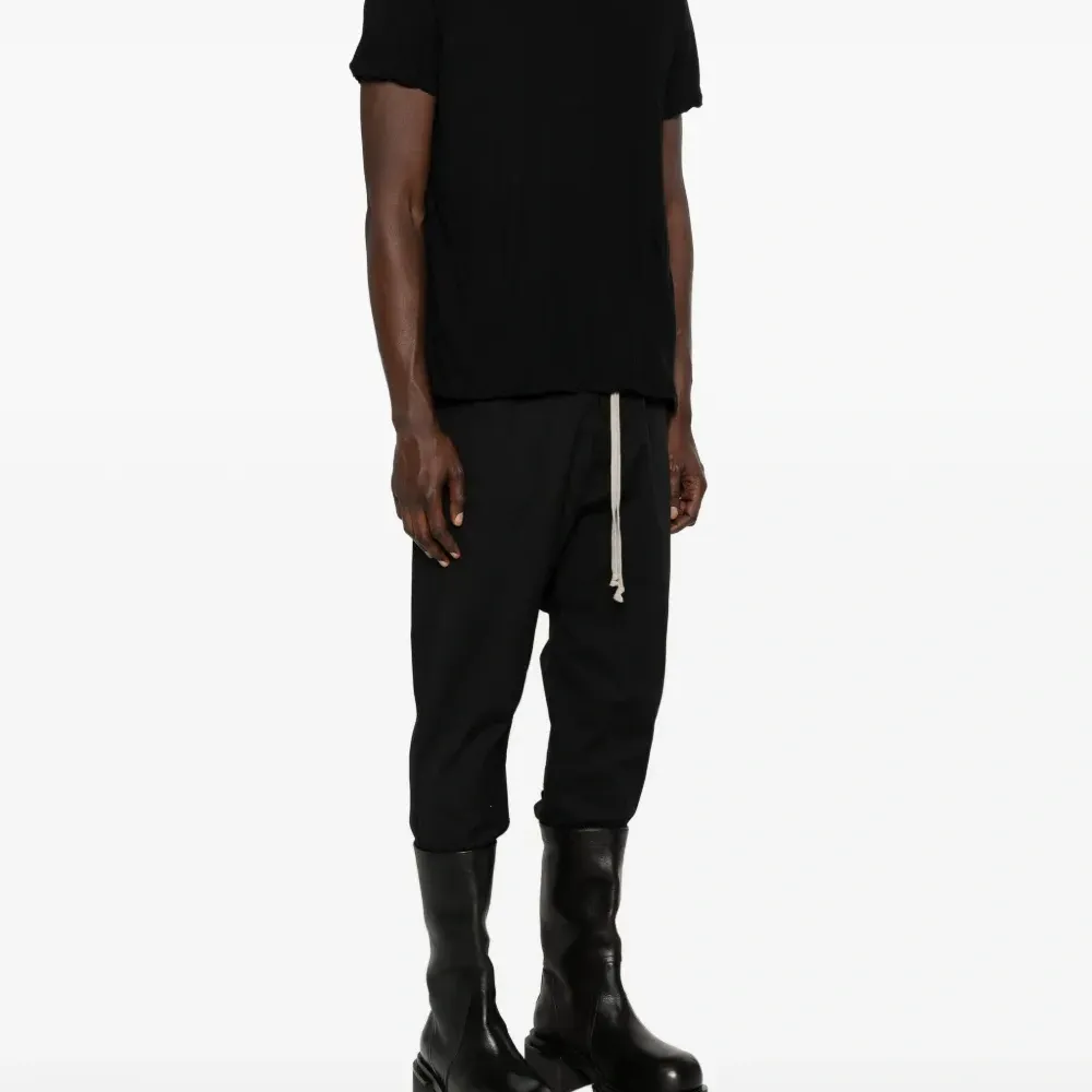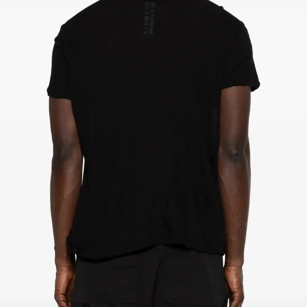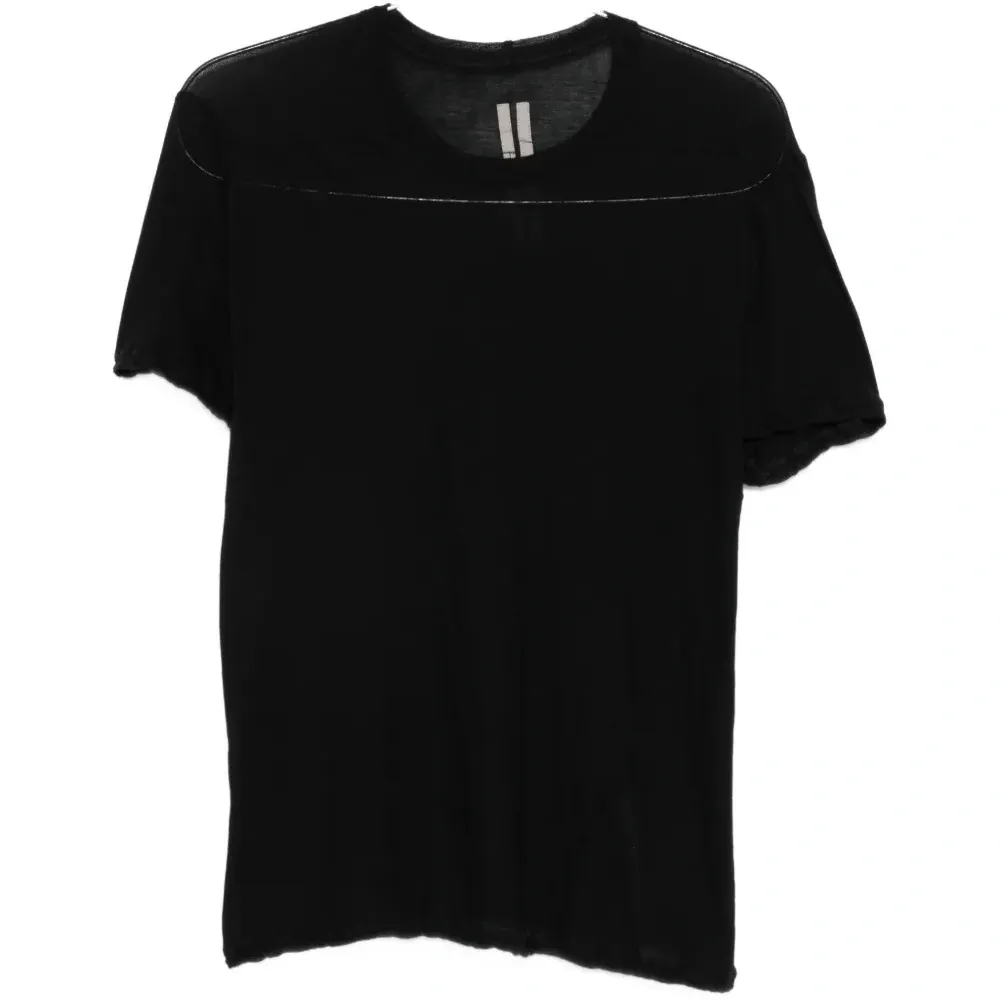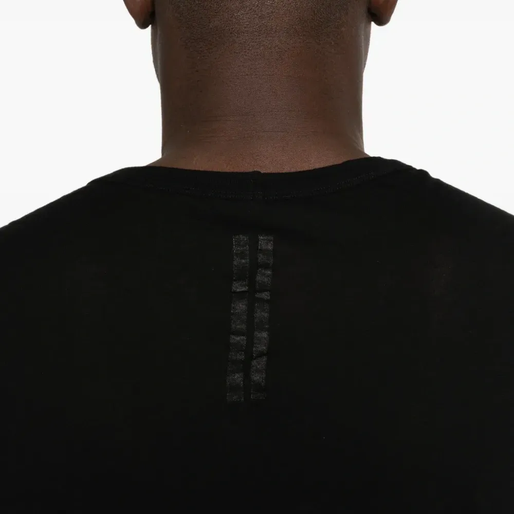 чёрный топ с круглым вырезом и контрастной отделкой швов