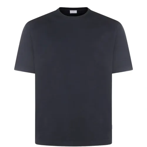 тёмно-синяя футболка с круглым вырезом и короткими рукавами
