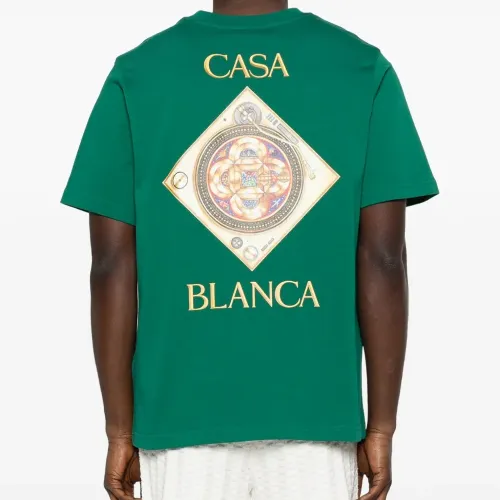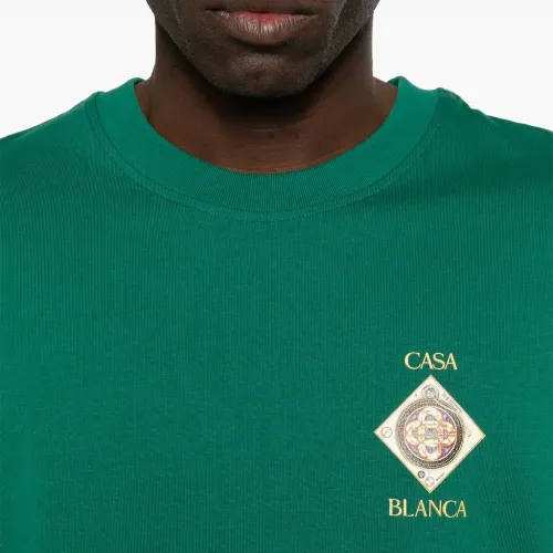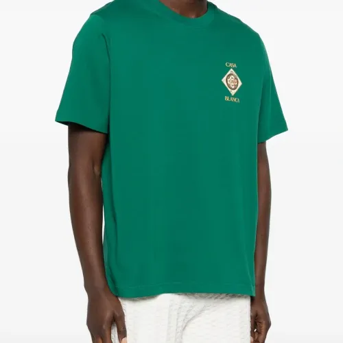 зелёная футболка с логотипом, графическим принтом, круглым вырезом и короткими рукавами