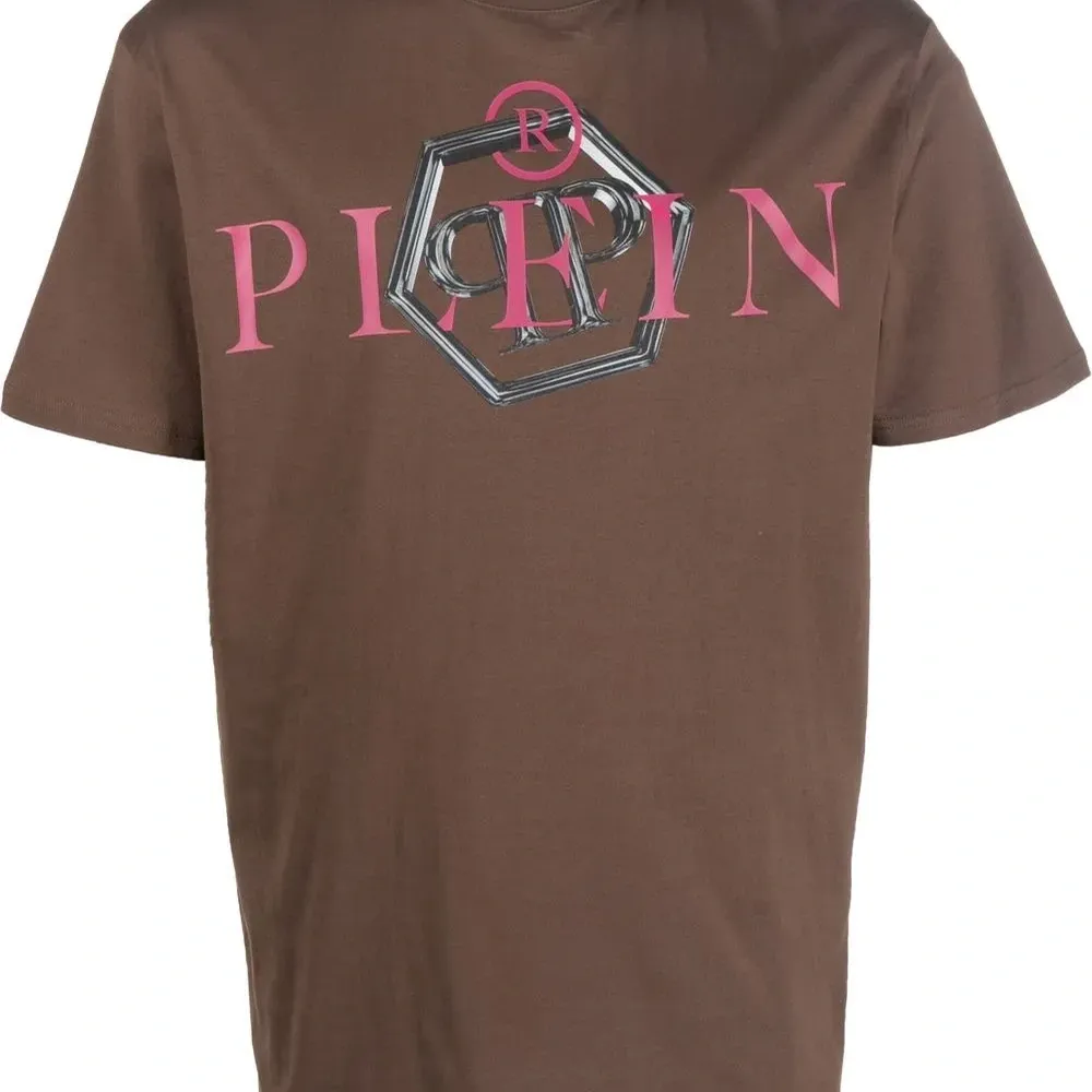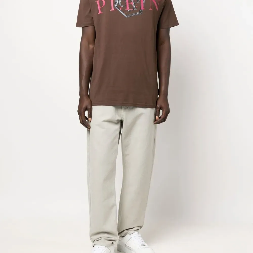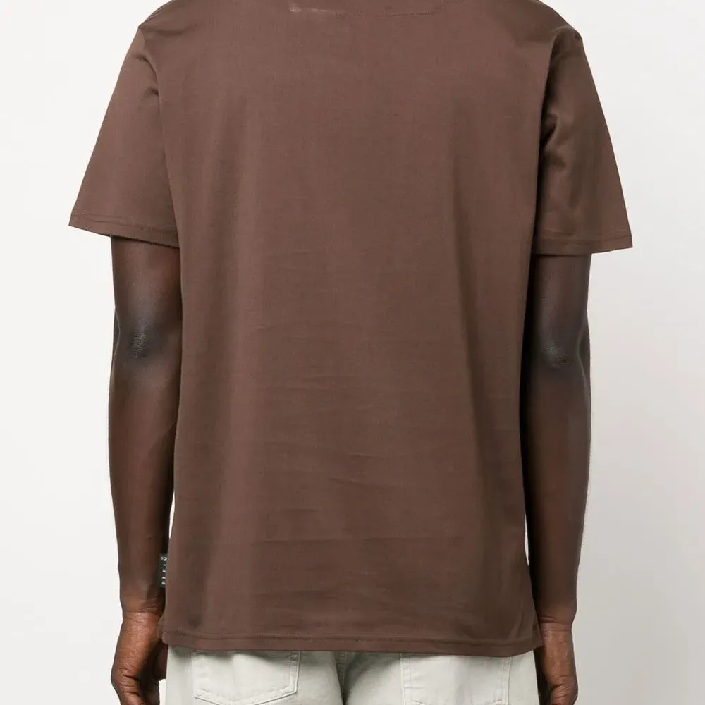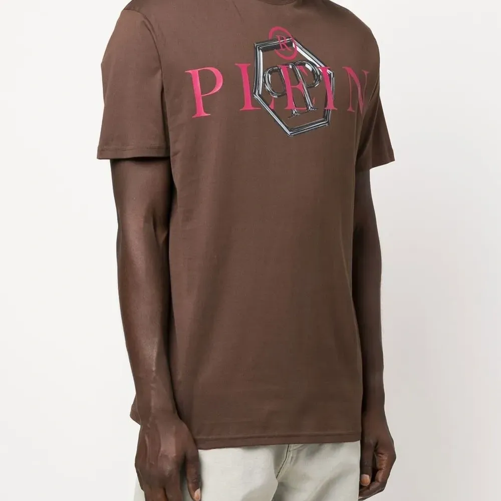 Красно-коричневый, разноцветный, хлопок, логотип спереди, нашивка с логотипом сзади, круглый вырез, короткие рукава и прямой подол.