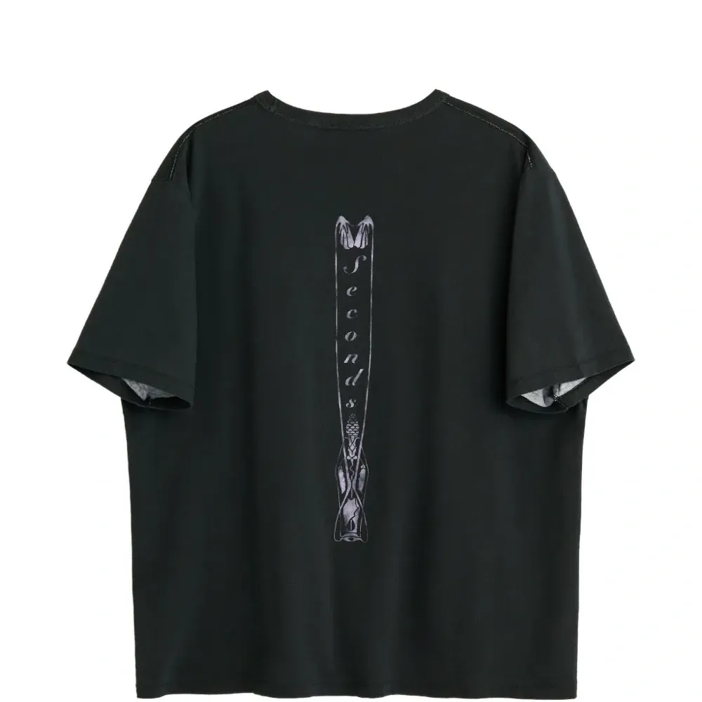 черная футболка с принтом, круглым вырезом и короткими рукавами