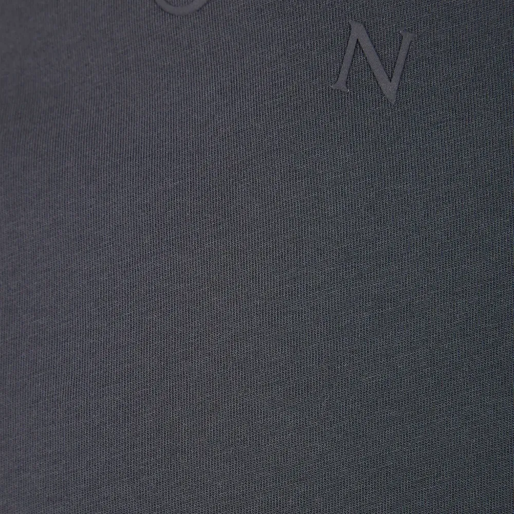 серый свитшот с круглым вырезом, тисненым декором, короткими рукавами и тональной строчкой