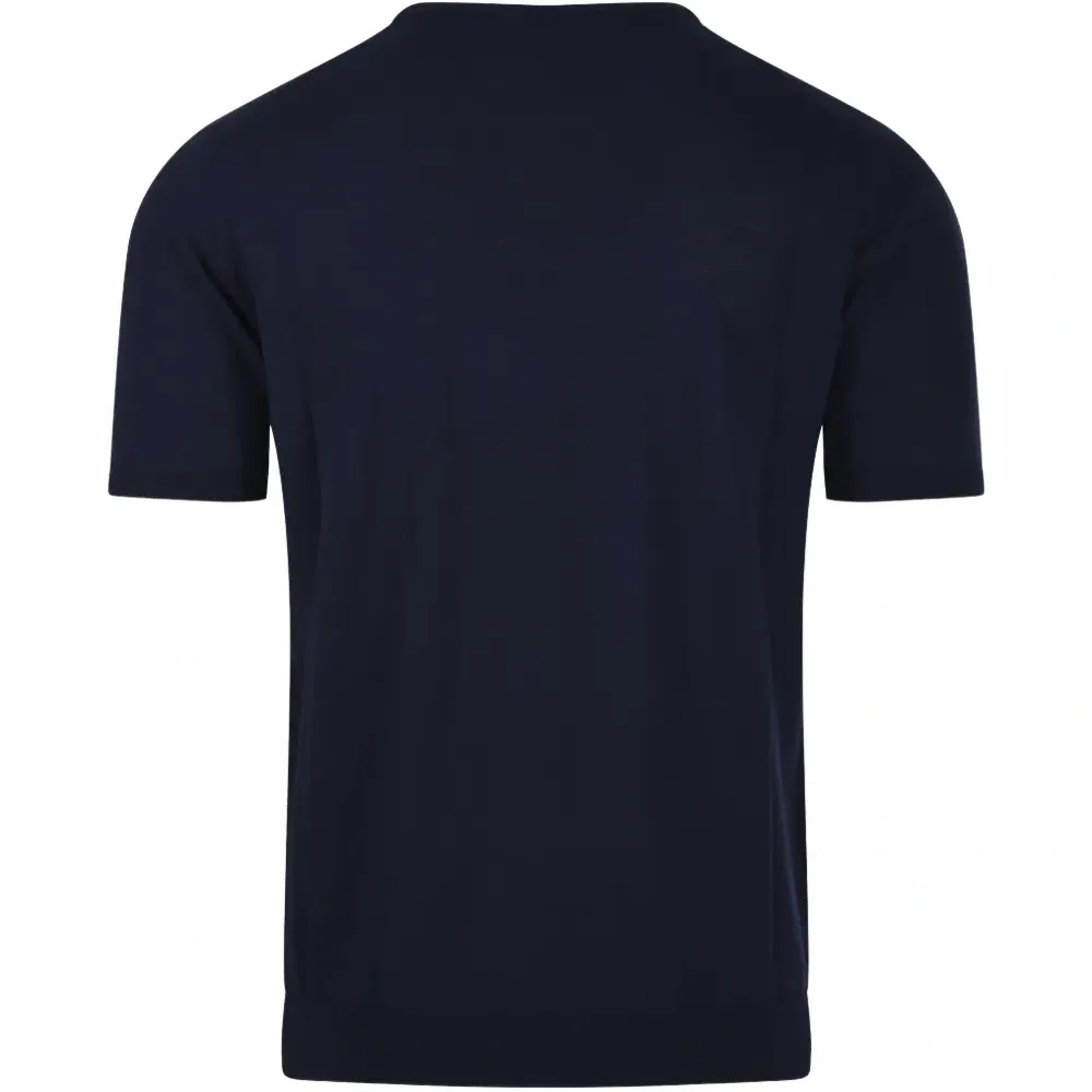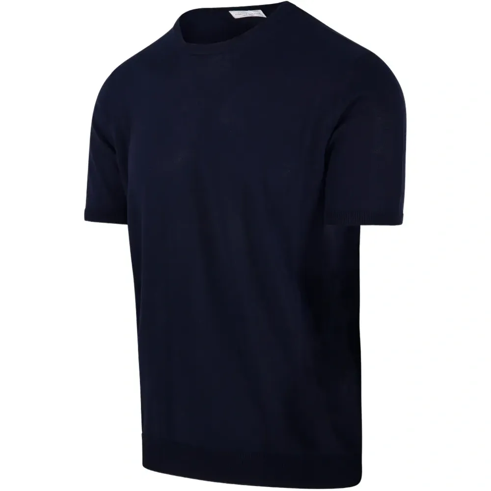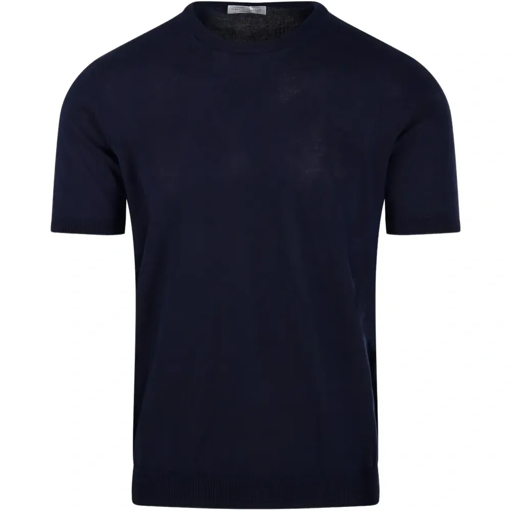 темно-синий цвет, круглый вырез, короткие рукава, рубчатый низ, рубчатые манжеты