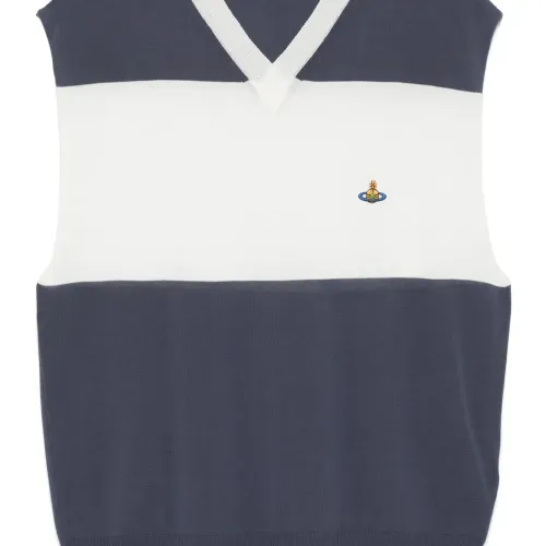 полосатый жилет с V-образным вырезом
