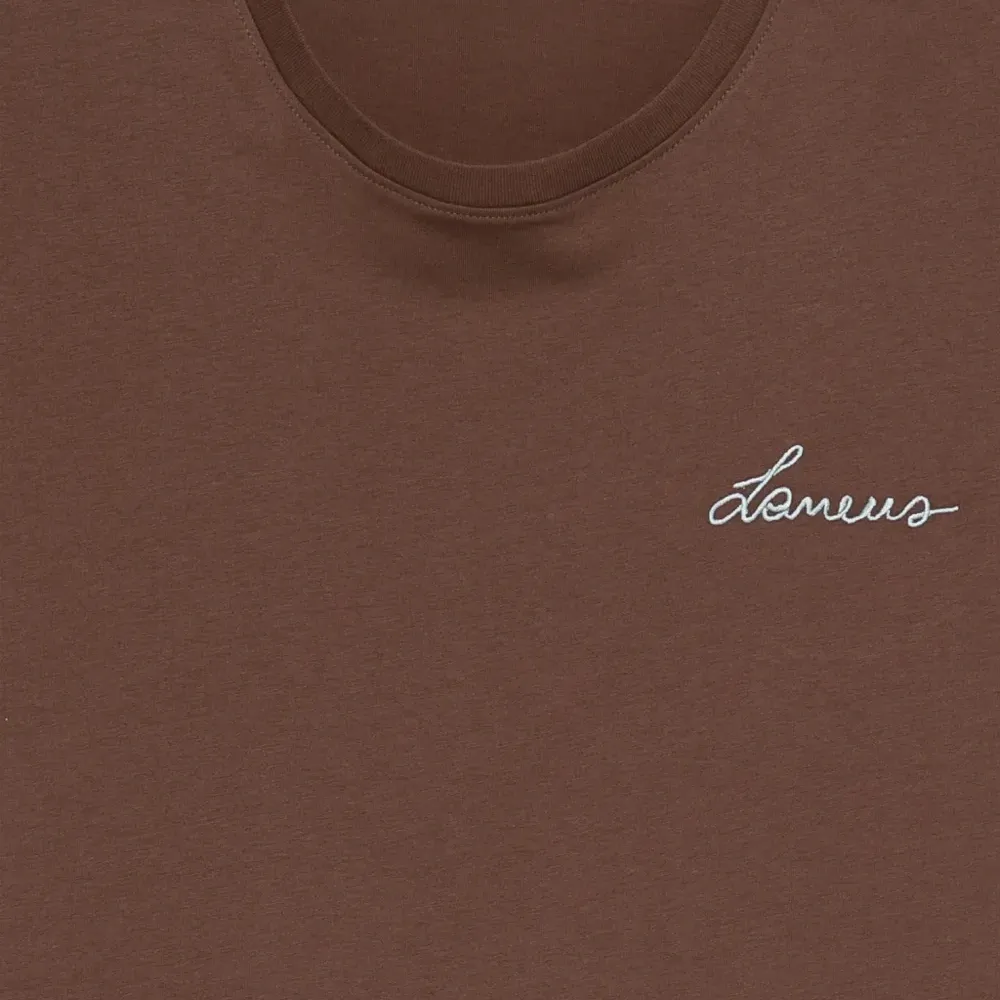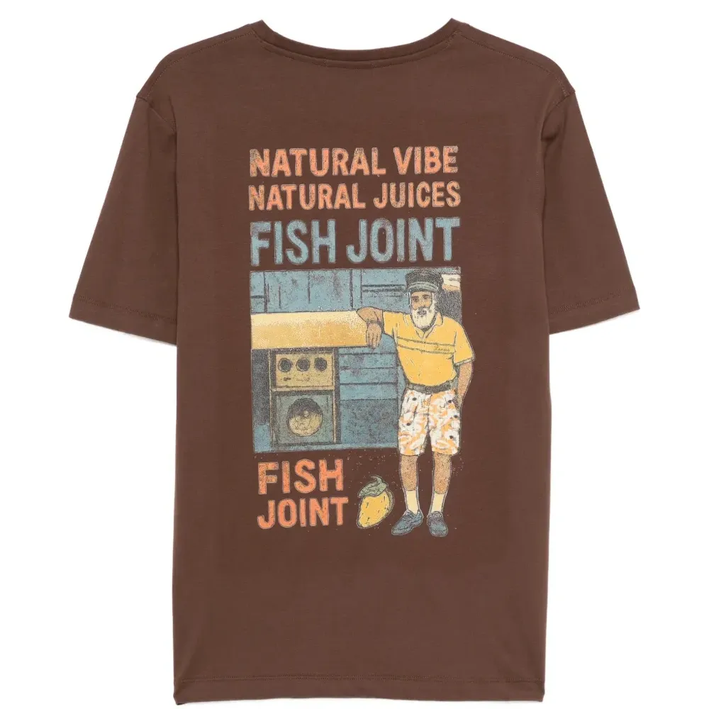 шоколадно-коричневая футболка с круглым вырезом, короткими рукавами и графическим принтом из хлопка