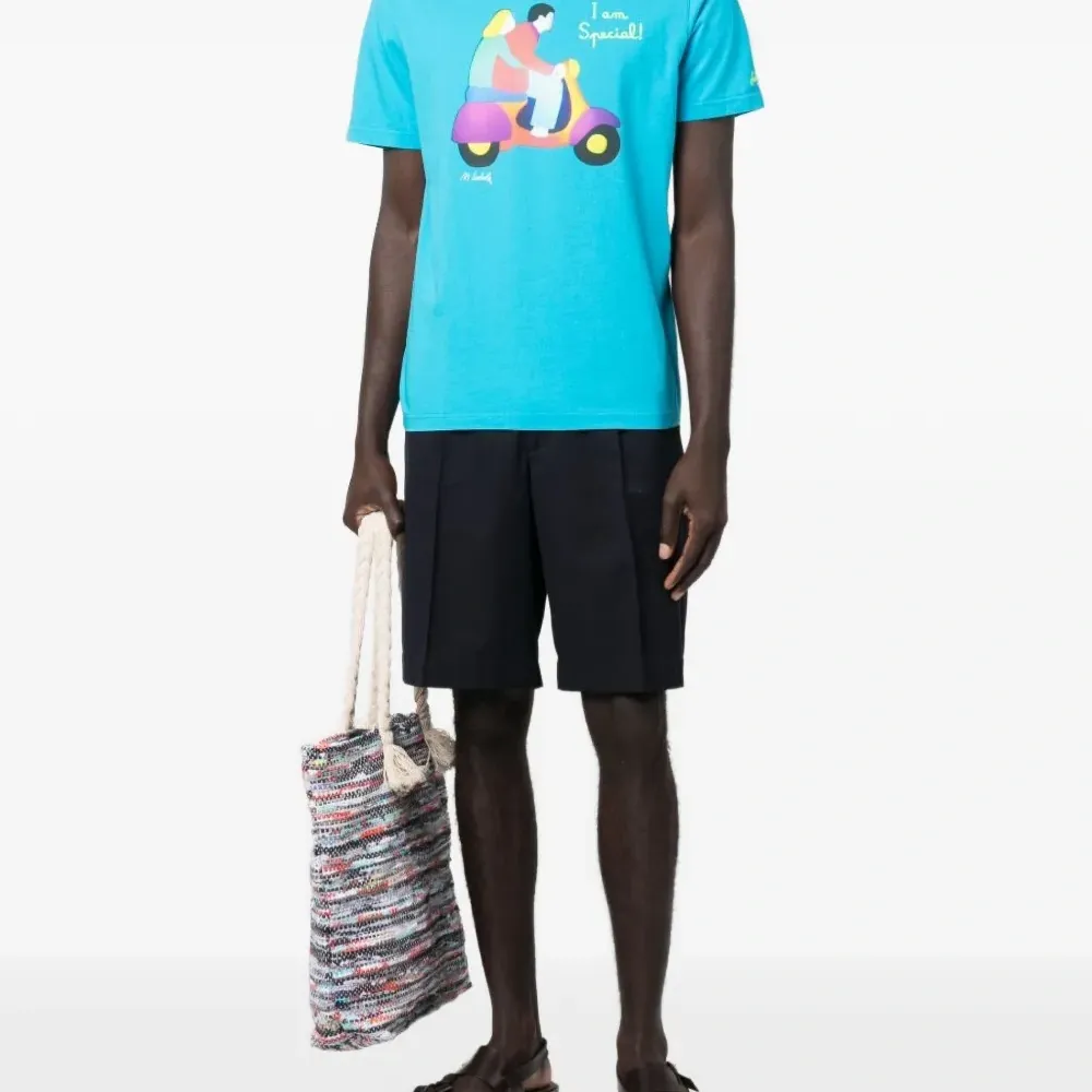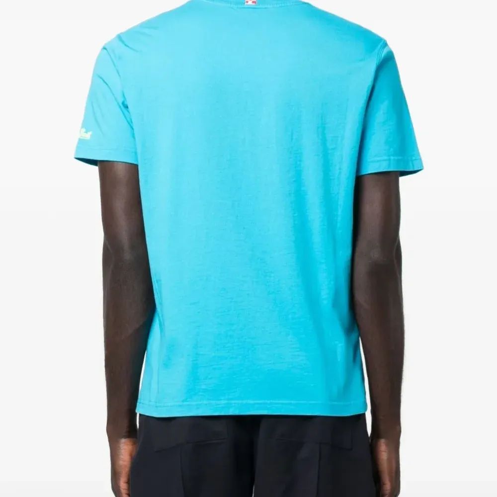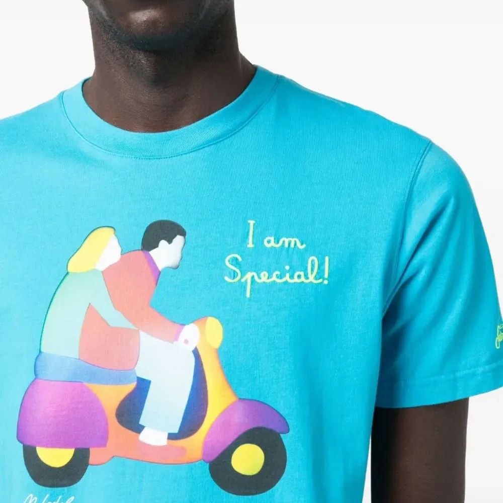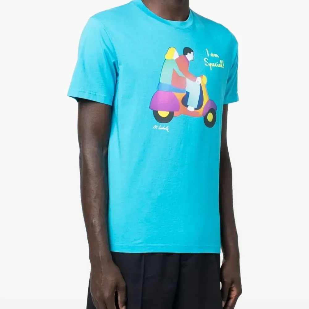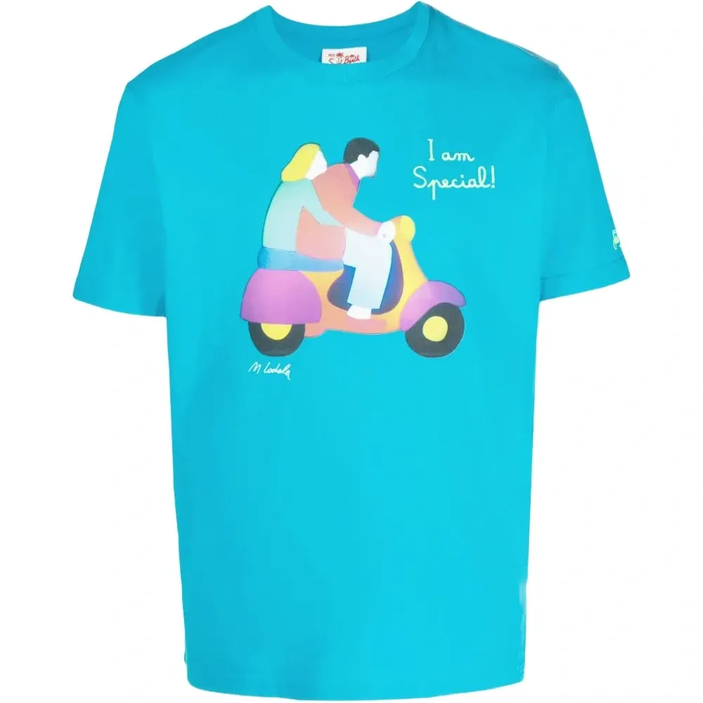 синий футболка с графическим принтом, круглым вырезом и короткими рукавами