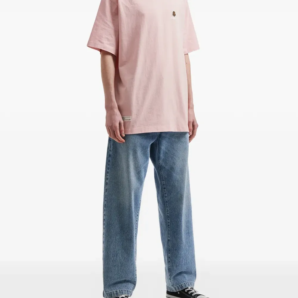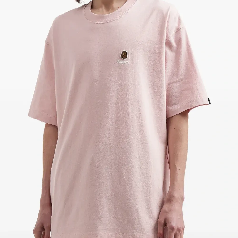 розовая футболка с вышивкой, круглый вырез, короткие рукава