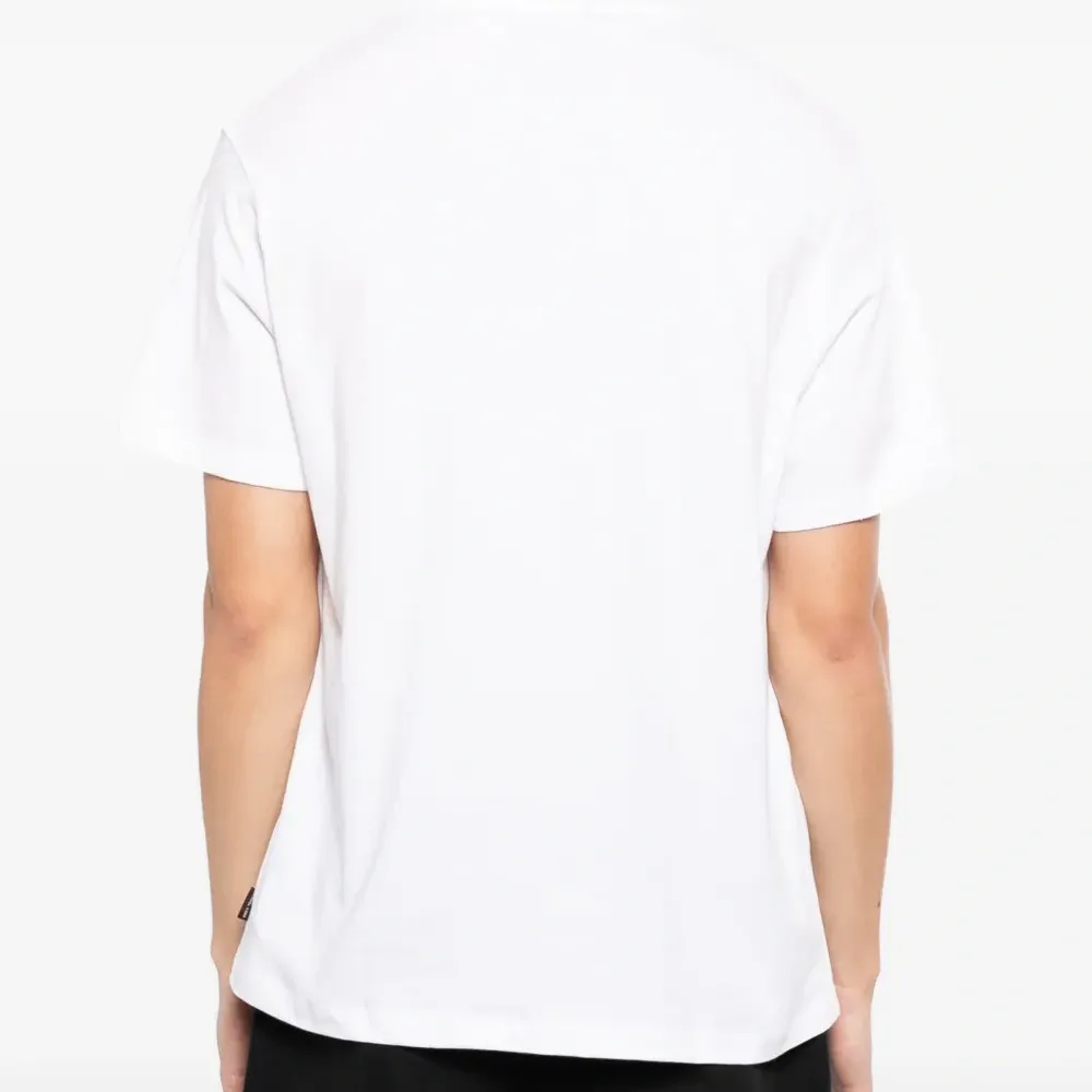 белая футболка с круглым вырезом, короткими рукавами и нагрудным карманом