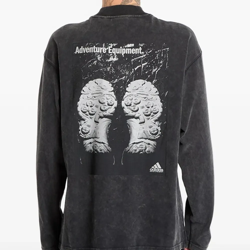 черная водолазка с длинными рукавами и графическим принтом на спине
