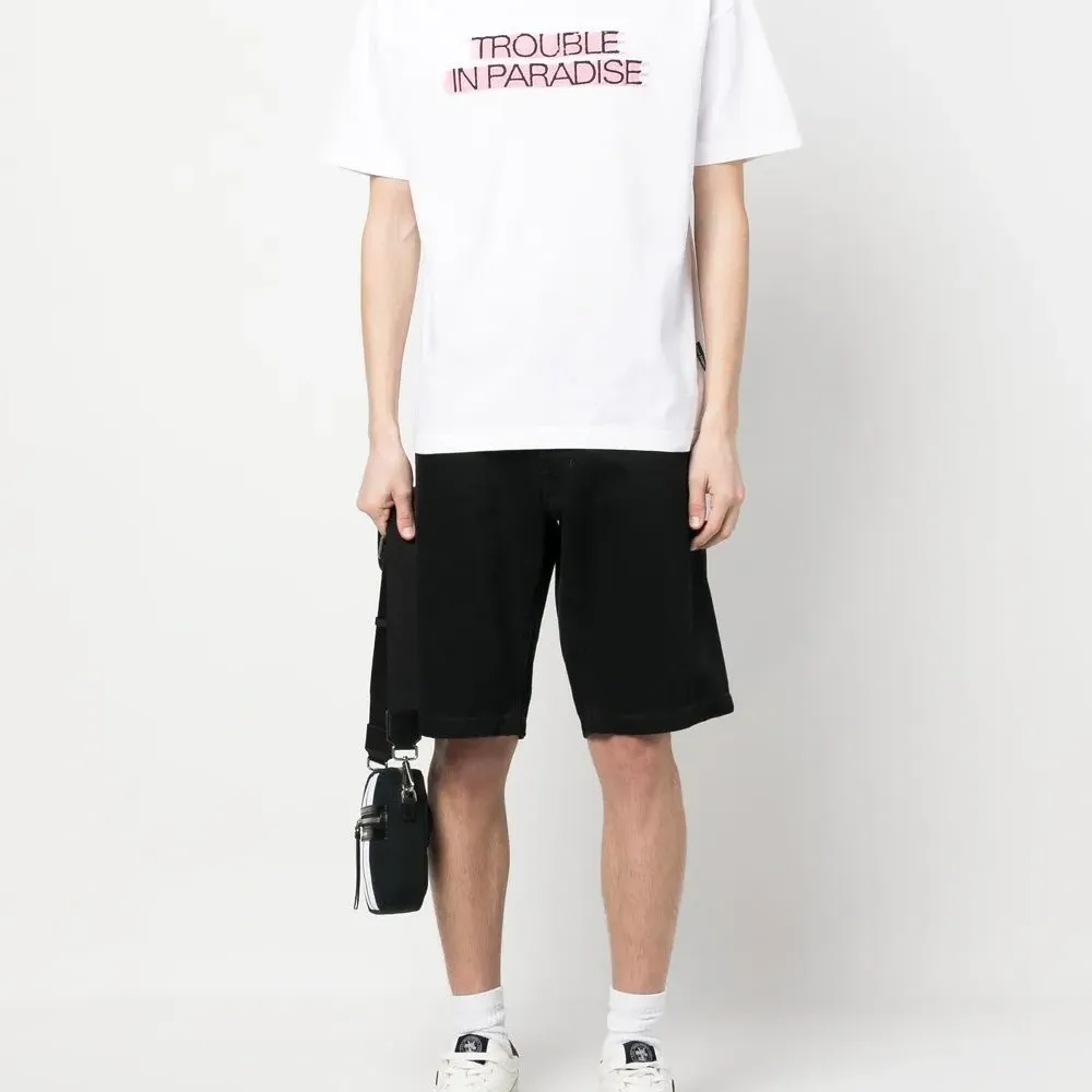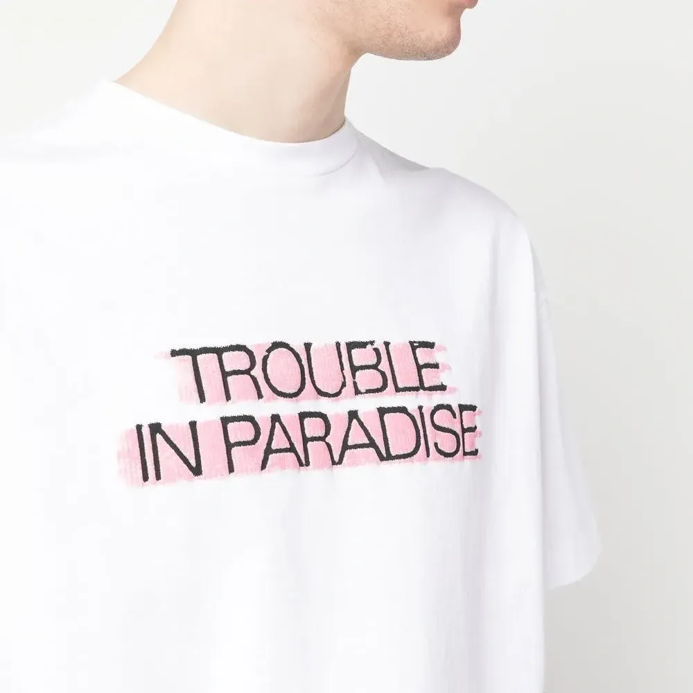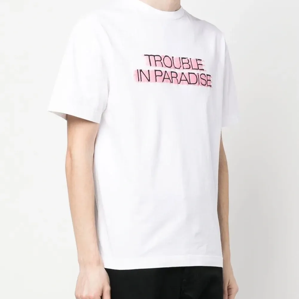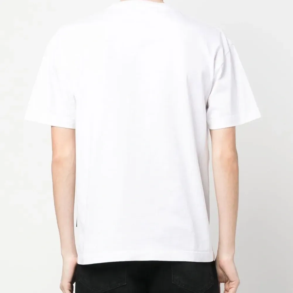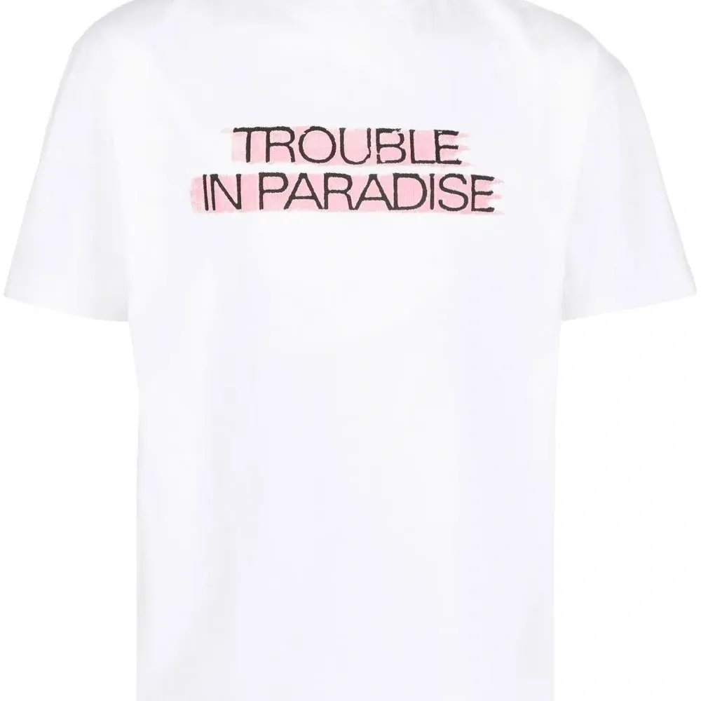 Белый, органический хлопок, принт с надписью спереди, круглый вырез, короткие рукава и прямой подол. Ответственный выбор: Этот товар как минимум на 50% состоит из органических материалов.