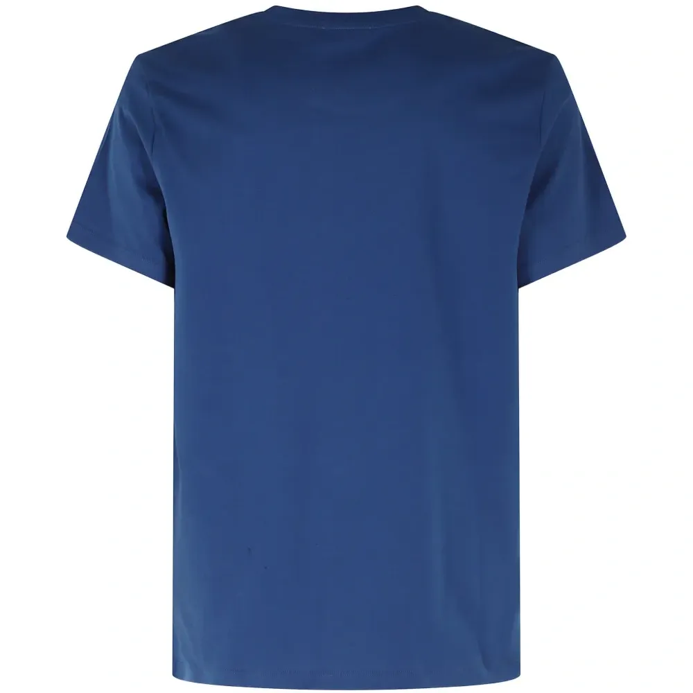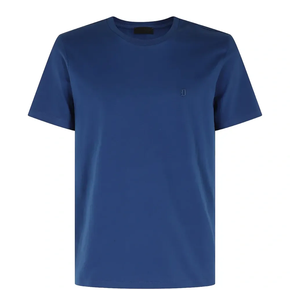 синяя футболка с круглым вырезом, короткими рукавами и логотипом