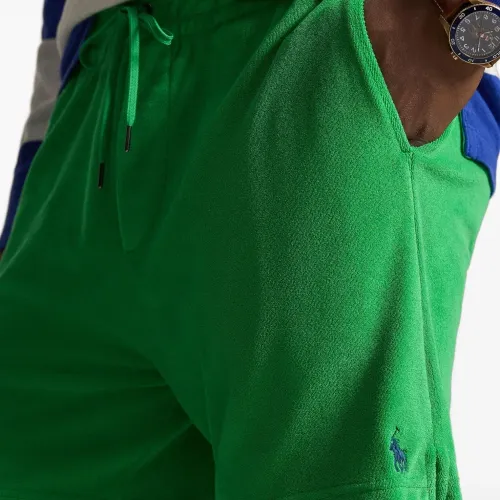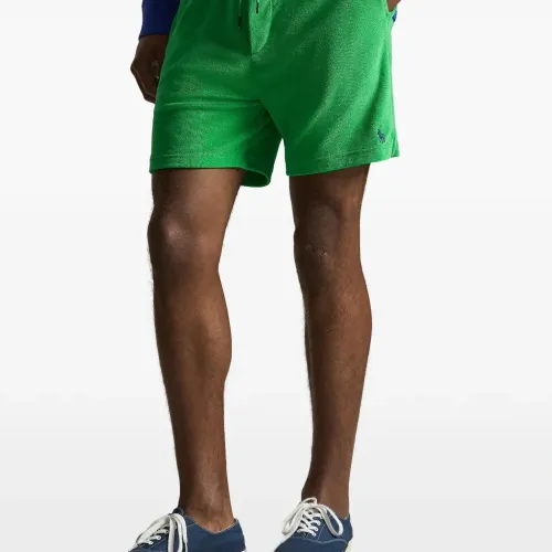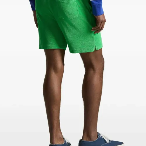 зелёные шорты с эластичным поясом на завязках, логотипом, накладным карманом сзади и разрезами по бокам