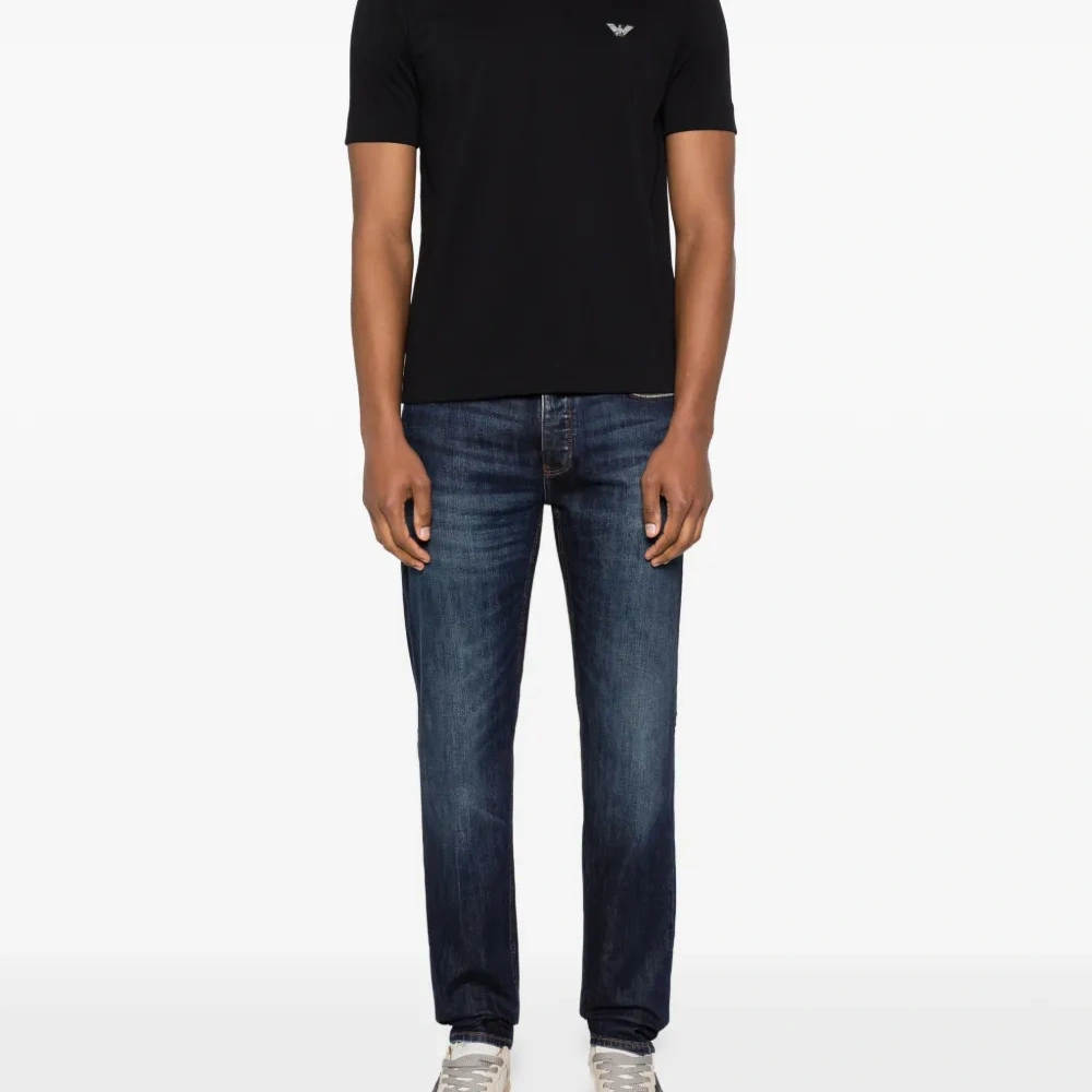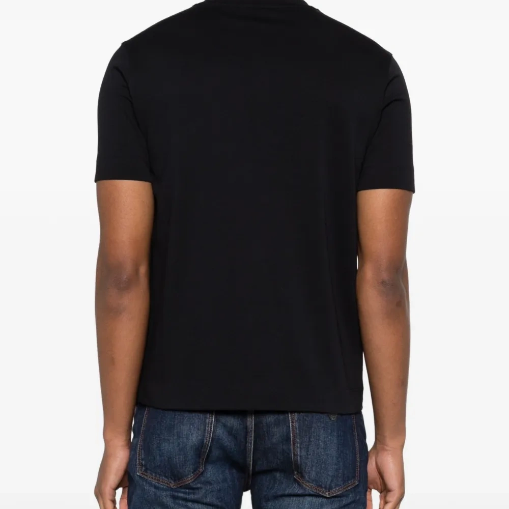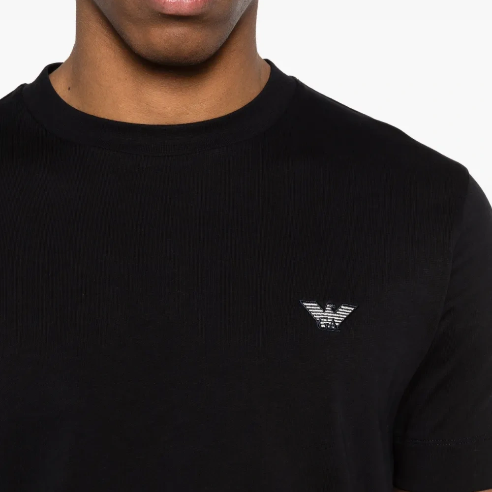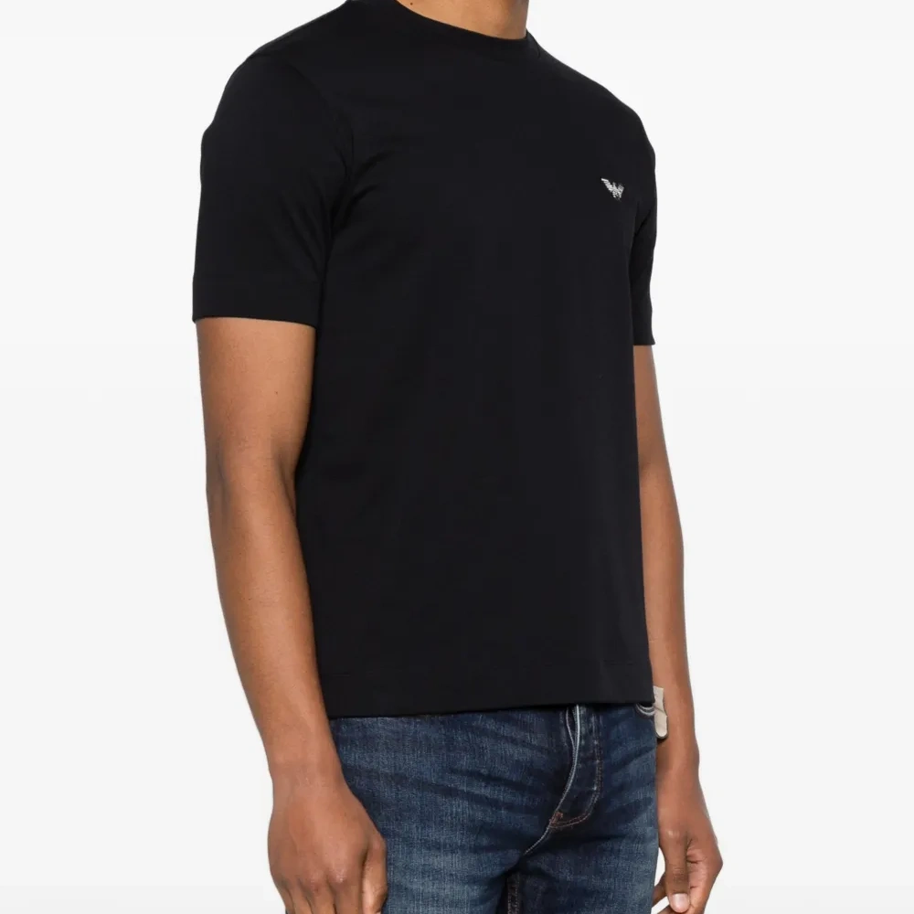 темно-синяя футболка с круглым вырезом, короткими рукавами и логотипом