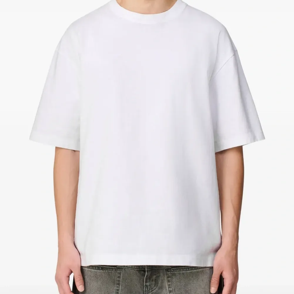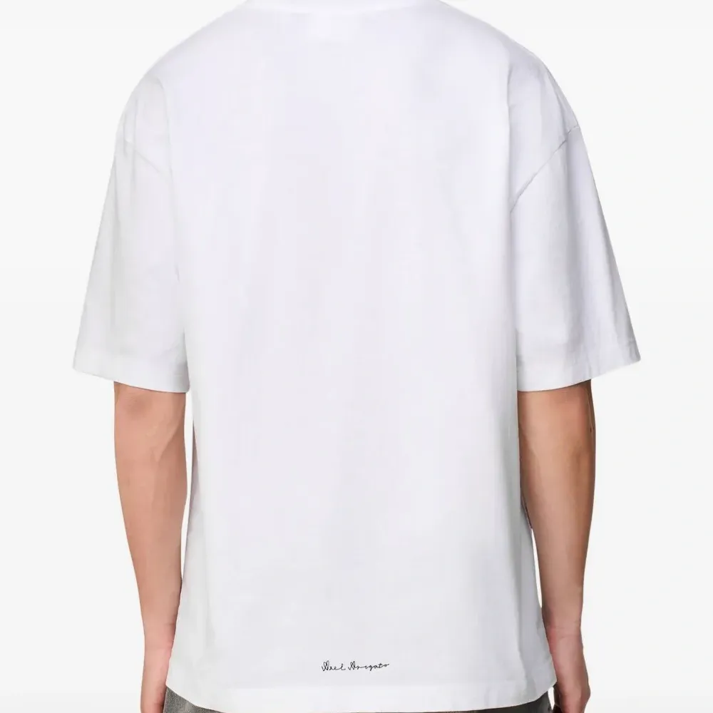 белый хлопок, короткие рукава, круглый вырез, принтованный логотип на спине