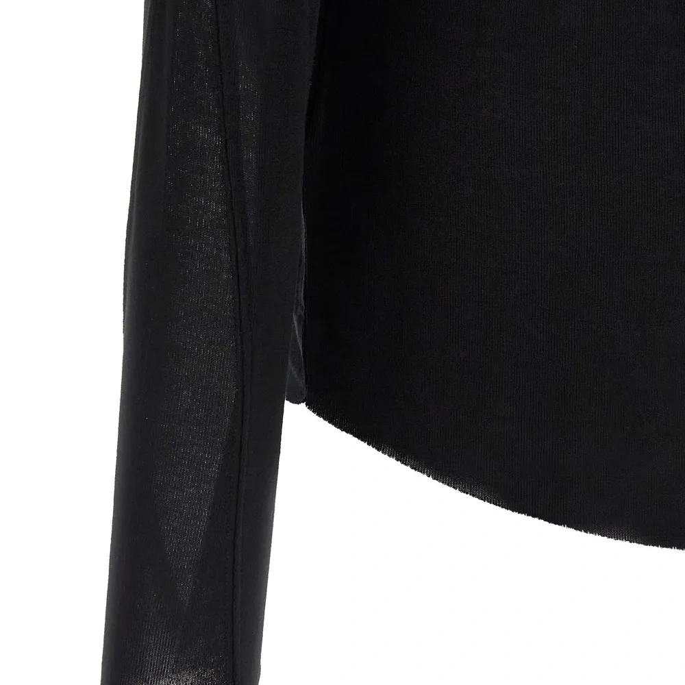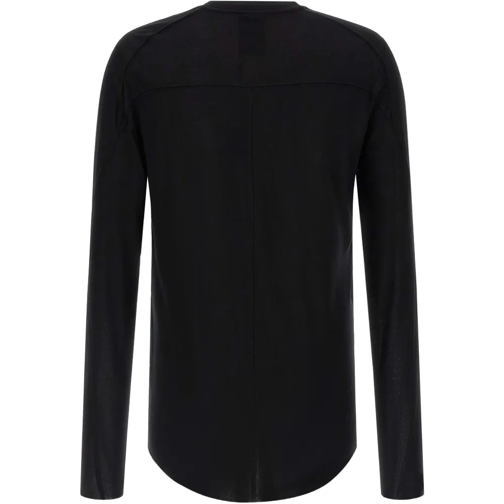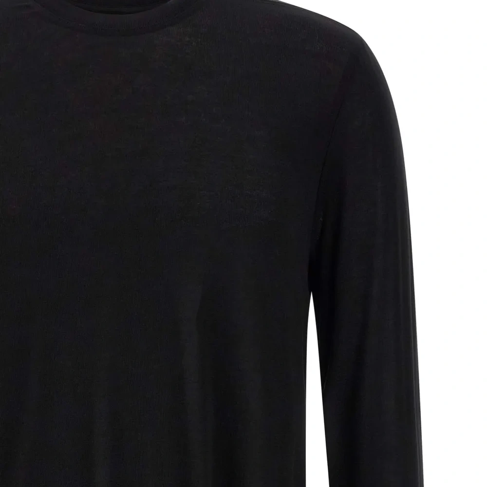 черный свитер с круглым вырезом, длинными рукавами и необработанным краем