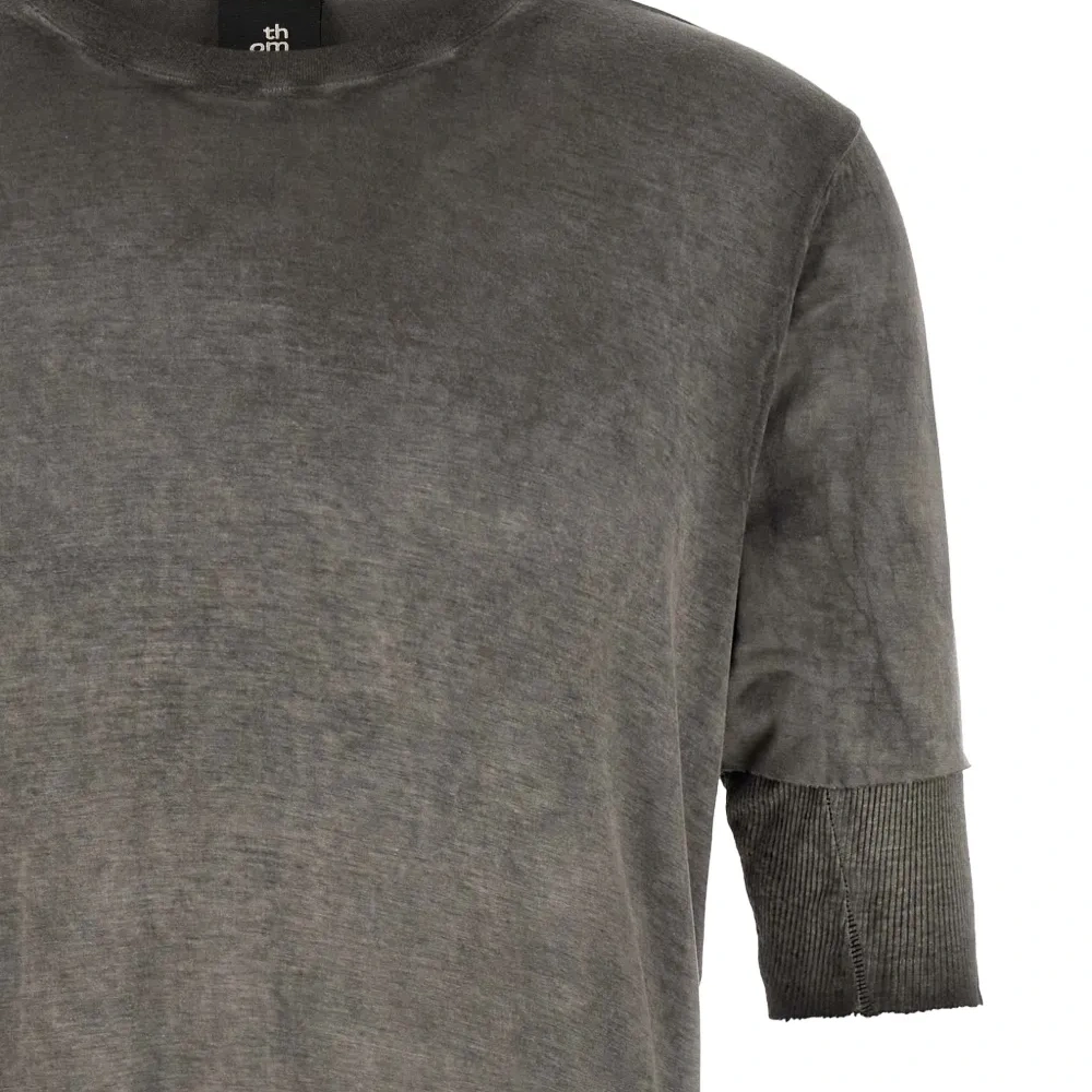 серый эффект délavé, круглый вырез, необработанный нижний край, строчка на спине, вставки из рубчатого трикотажа на рукавах