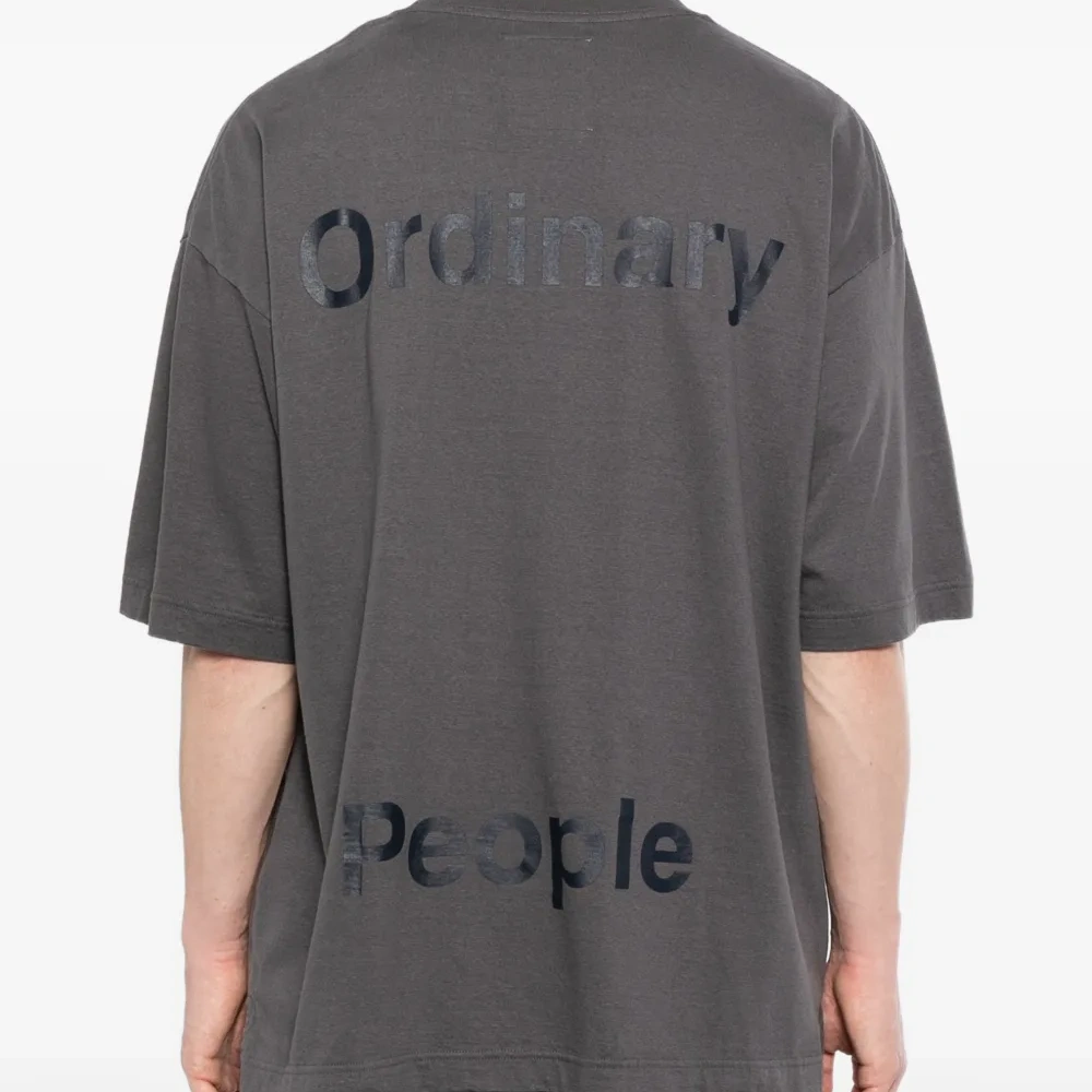 черная футболка с графическим принтом, круглый вырез, короткие рукава, бирка на задней части ворота
