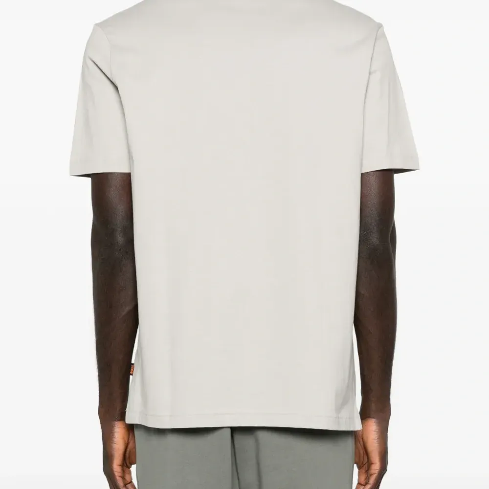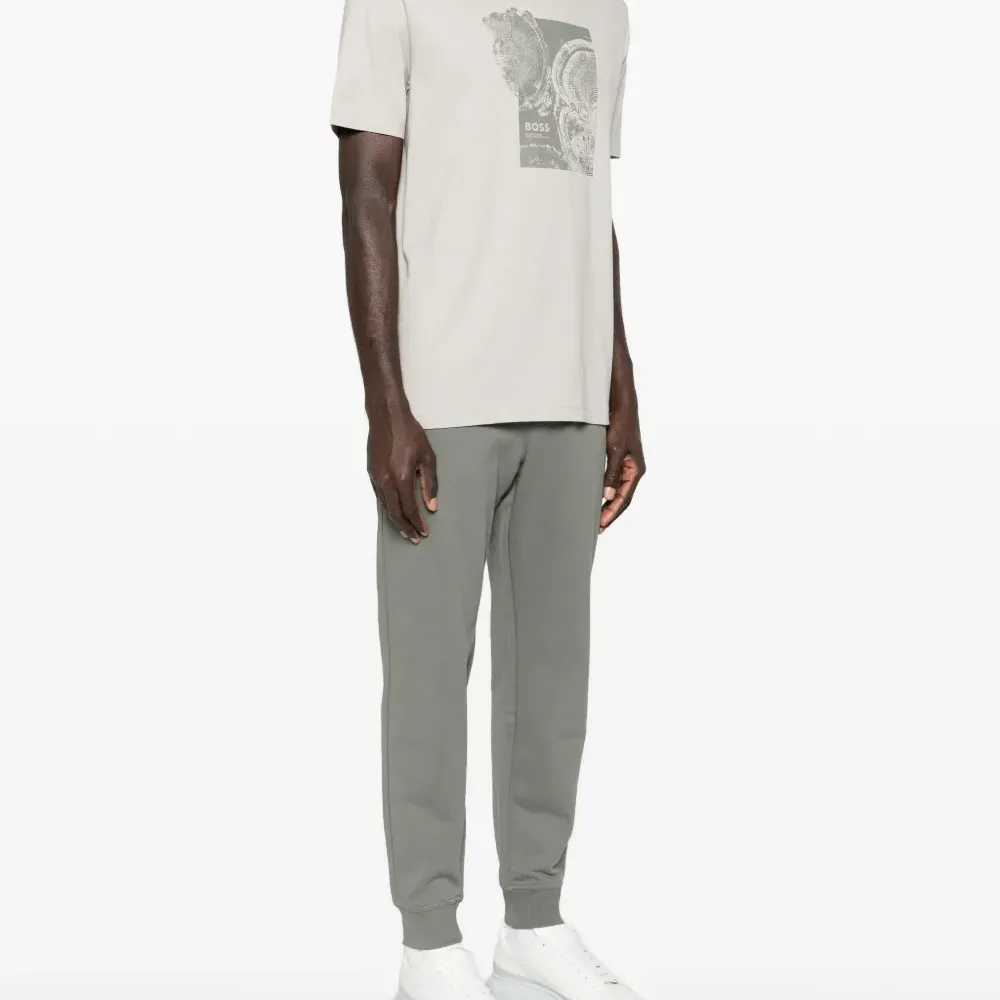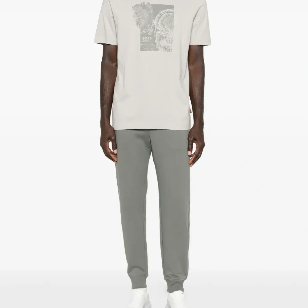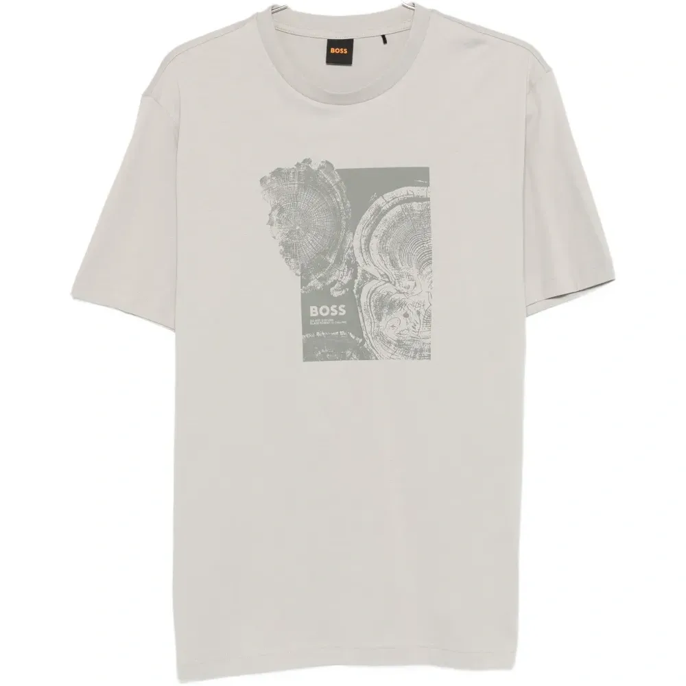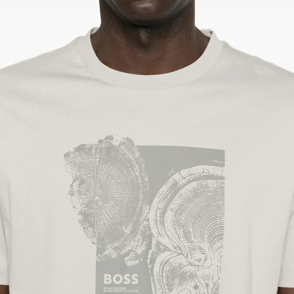 светло-серая футболка с круглым вырезом, короткими рукавами, графичным принтом, стандартного кроя