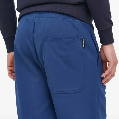 темно-синие брюки с поясом на кулиске, накладным карманом сзади и боковыми прорезными карманами
