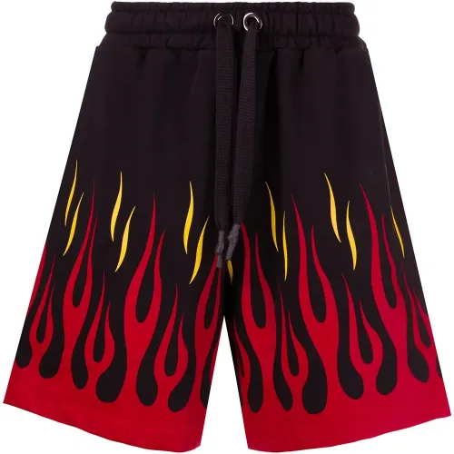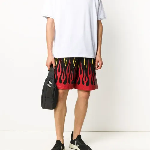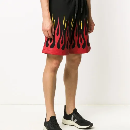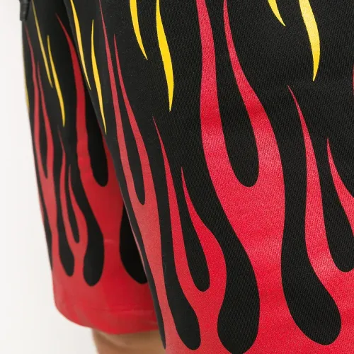 Спортивные шорты с принтом от OMC. Принт с изображением пламени, кулиска на талии и средняя длина. Цвет: черный.