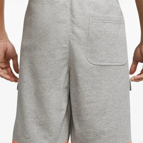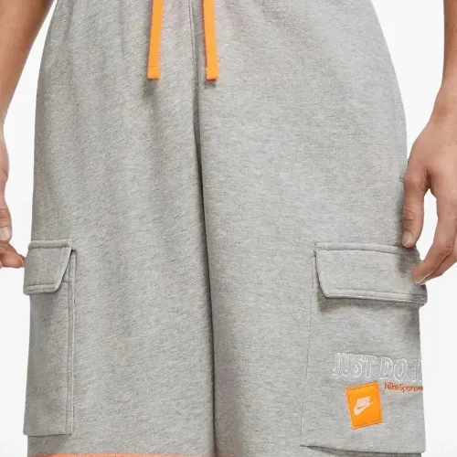 серый и оранжевый, шнурок, боковой клапан-карман, задний накладной карман, нашивка с логотипом