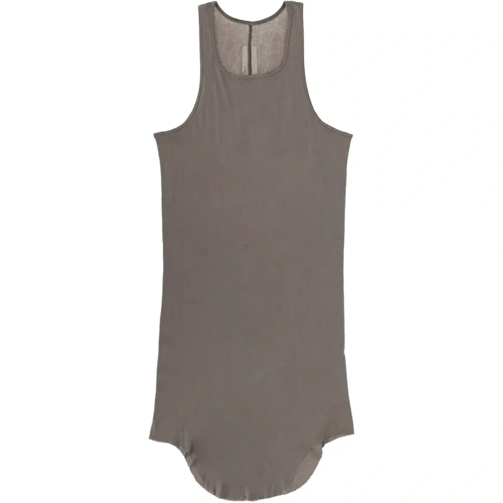 Серый топ с круглым вырезом и изогнутым подолом без рукавов