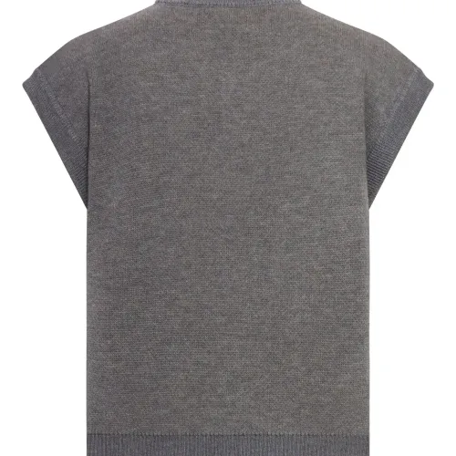 средне-серый жилет с V-образным вырезом, ребристыми отделками и интарсией в виде медвежонка