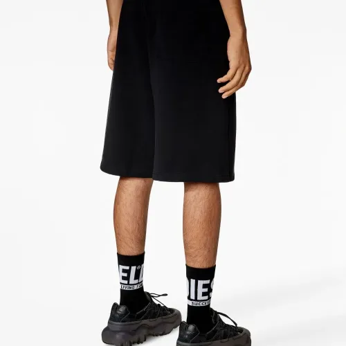 Черный, хлопок, эластичный пояс, длина ниже колена, два кармана по бокам и накладной карман сзади.