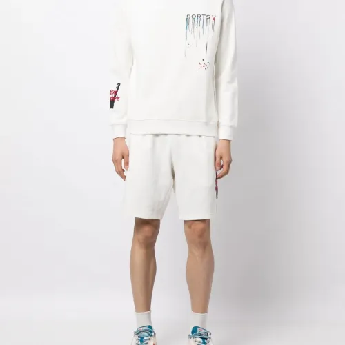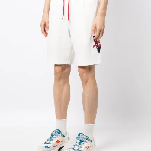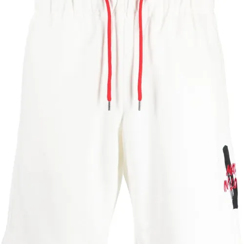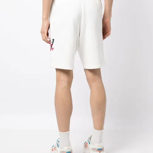 Белый, хлопок, кулиска на талии, контрастные шнурки, ткань джерси, нашивка с логотипом сбоку, длина выше колена и два кармана по бокам.