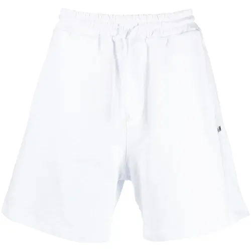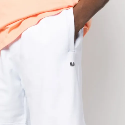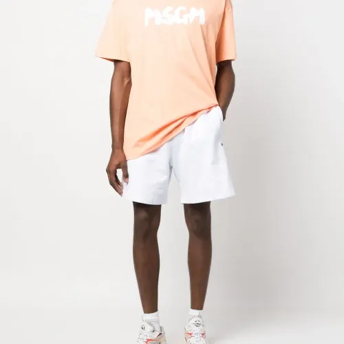 Белый, хлопок, логотип сбоку, кулиска на талии, два прорезных кармана по бокам и длина выше колена.