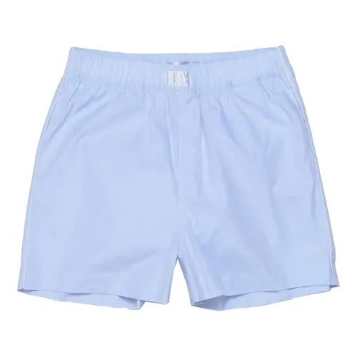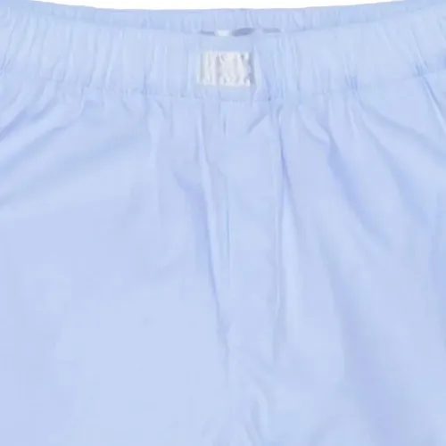 светло-голубые брюки с эластичным поясом, боковым кантом и застежкой на пуговицы