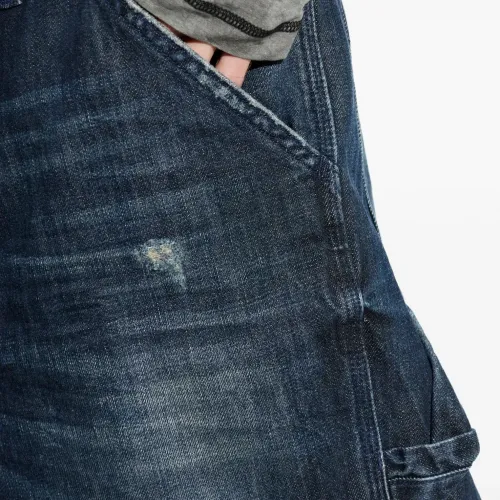 синий, с эффектом состаренности, застежка на пуговицы, пять карманов, шлевки для ремня