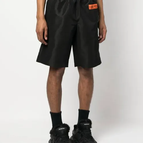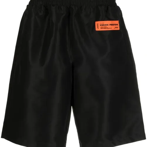 Длина по колено, эластичный пояс, два вшитых кармана по бокам, нашивка с логотипом спереди и прорезной карман сзади.
