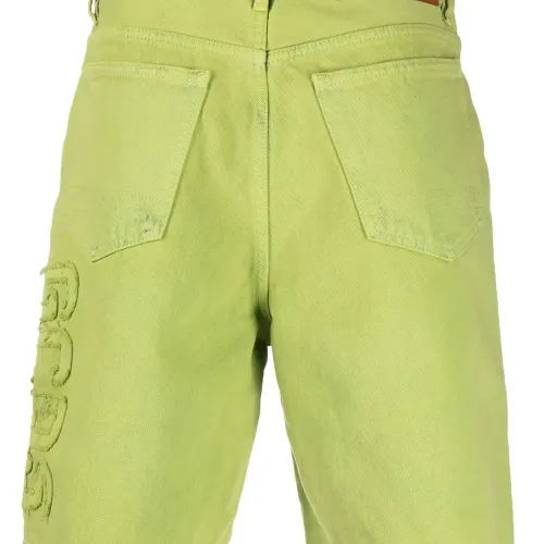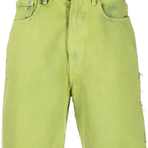 Салатовый, хлопок, средняя посадка, петли для ремня, застежка на пуговицах спереди и два накладных кармана по бокам.