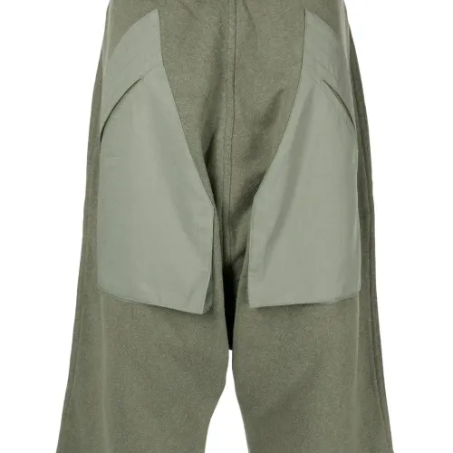 Серо-зеленый, смесовый хлопок, кулиска на талии, прямой крой, два накладных кармана сзади, прямой подол и длина по колено.