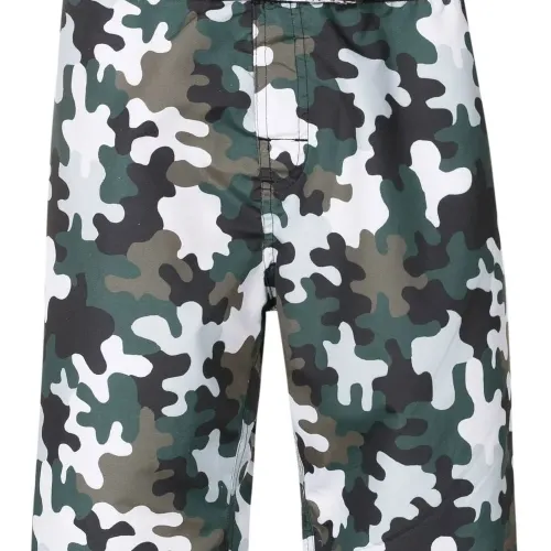 Зеленый, разноцветный, камуфляжный принт, пояс с логотипом, эластичный пояс, средняя посадка и длина выше колена.
