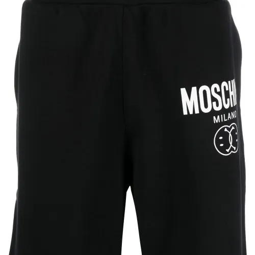 Черный, хлопок, принт с логотипом, эластичный пояс, прорезные карманы по бокам, задние карманы с листочкой и прямой крой.