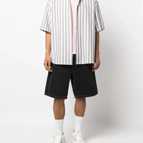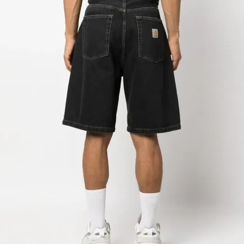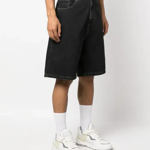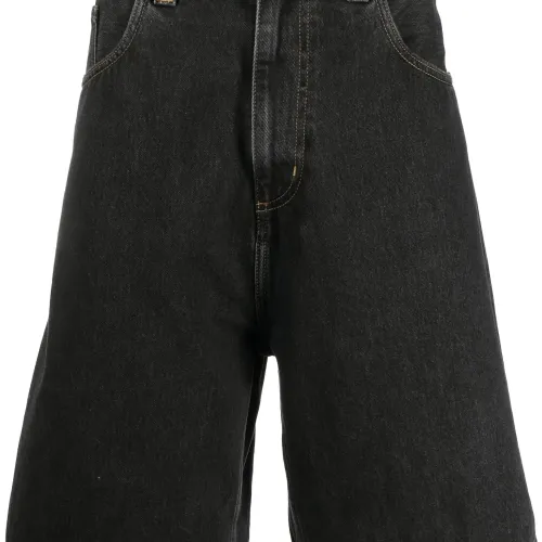 Черный, хлопок, нашивка с логотипом сзади, петли для ремня, потайная застежка на молнии и пуговицах, пять карманов, широкий крой и длина по колено.