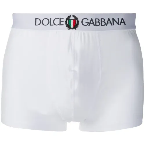 Культовый бренд Dolce & Gabbana завоевал мировое признание благодаря высоким стандартам качества пошива. В коллекцию итальянского дома моды вошли белые боксеры из эластичного хлопка с вышитым логотипом от Dolce & Gabbana (Дольче энд Габбана). Эластичный пояс, вышитый логотип спереди и узкий крой. Примерка белья разрешена исключительно поверх собственного.