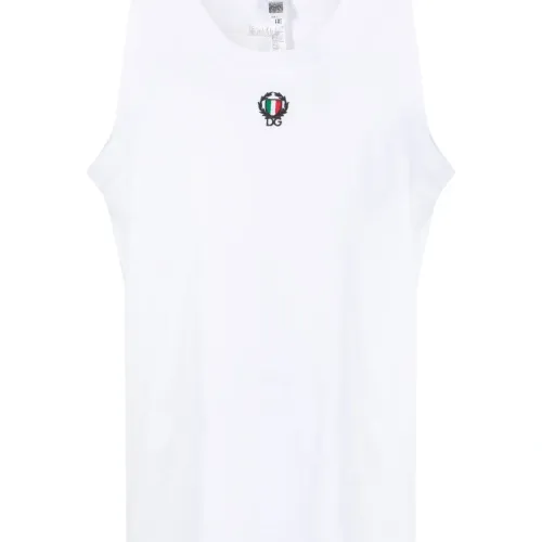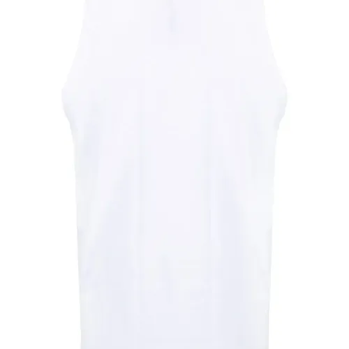 Белый, эластичный хлопок, вышитый логотип, U-образный вырез, без рукавов и прямой подол.