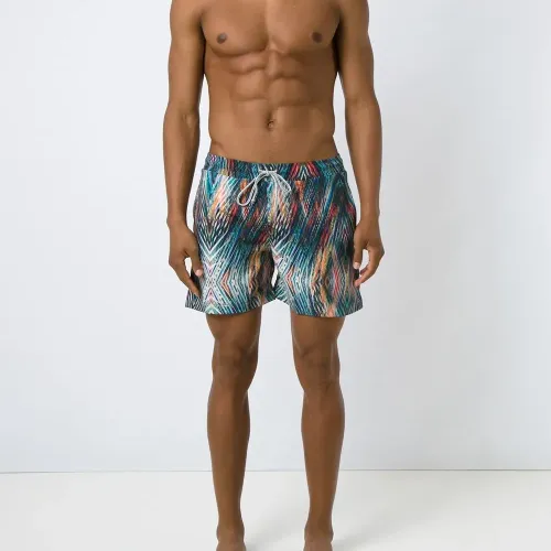Разноцветные шорты для плавания 'Vu Lua' от Lygia & Nanny. Эластичный пояс со шнурком, сплошной узор, накладной карман сзади. Примерка купальников разрешена только поверх собственного нижнего белья.