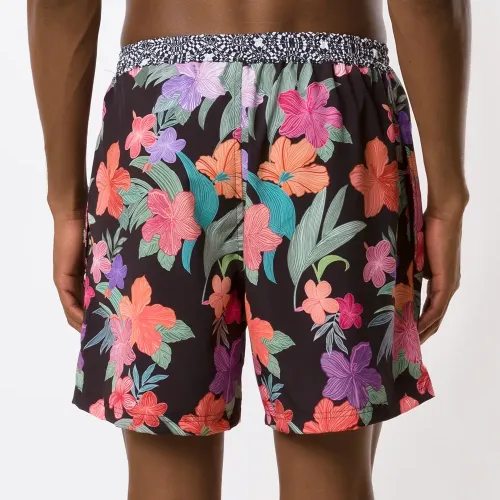 Шорты с принтом Hibiscus от Amir Slama. Средняя посадка, кулиска на талии, цветочный принт и прямой крой. Цвет: черный.