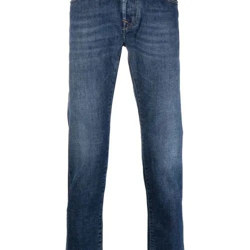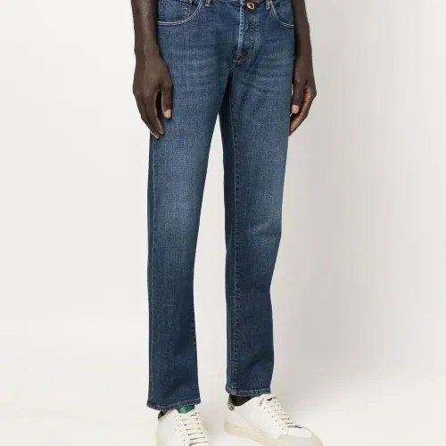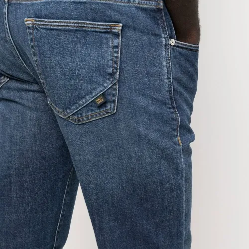 Нашивка с логотипом сзади, пять карманов, петли для ремня и прямой крой.