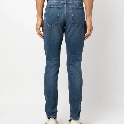 Темно-синий, смесь хлопка и конопляного волокна, петли для ремня, застежка на молнии и пуговице спереди, пять карманов и узкий крой.