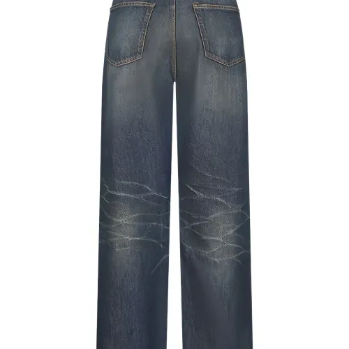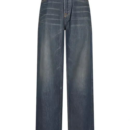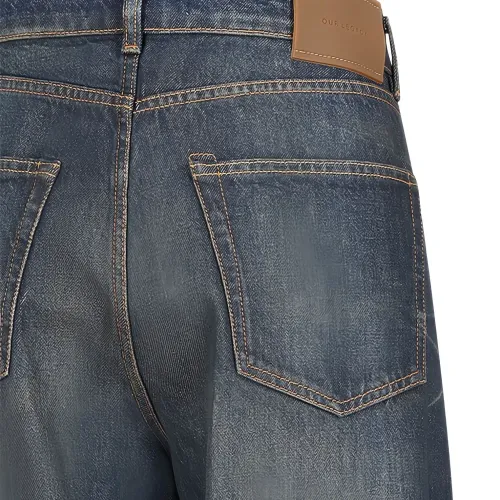 синий хлопок выцветшая стирка застежка на пуговицах логотип на нашивке классические пять карманов