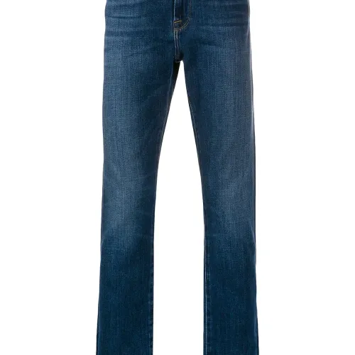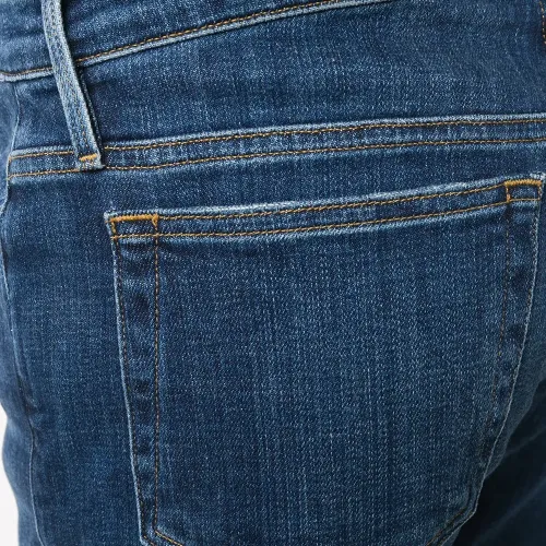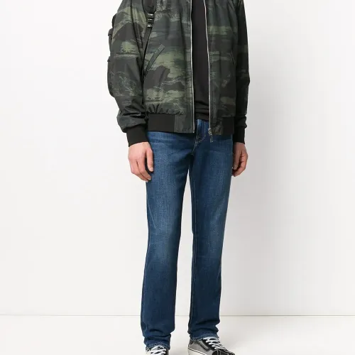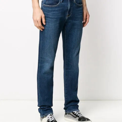 Джинсы прямого кроя от Frame. Петли для ремня, классическая пятикарманная модель, прямые брючины, выцветший эффект и ширинка на молнии с пуговицей. Цвет: синий.