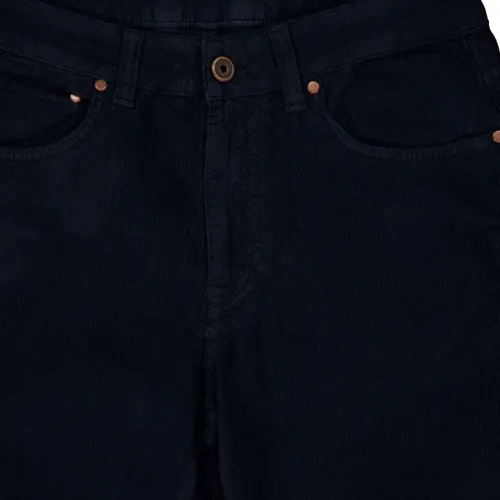 темно-синий вельвет классические пять карманов застежка-молния и пуговица, скрытая под планкой прямые брючины